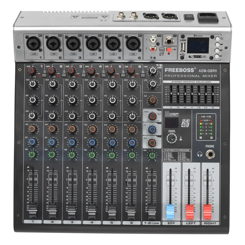 Freeboss миксер аудио 6-канальный USB Функция Bluetooth караоке dj определения консоль с 48В Мощность звукомикшер