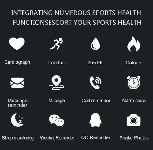 * Дополнительные функции: Поиск браслета, напоминание о тревоге, удаленная камера, поднимите руку, чтобы осветить,Управление музыкой,Погода