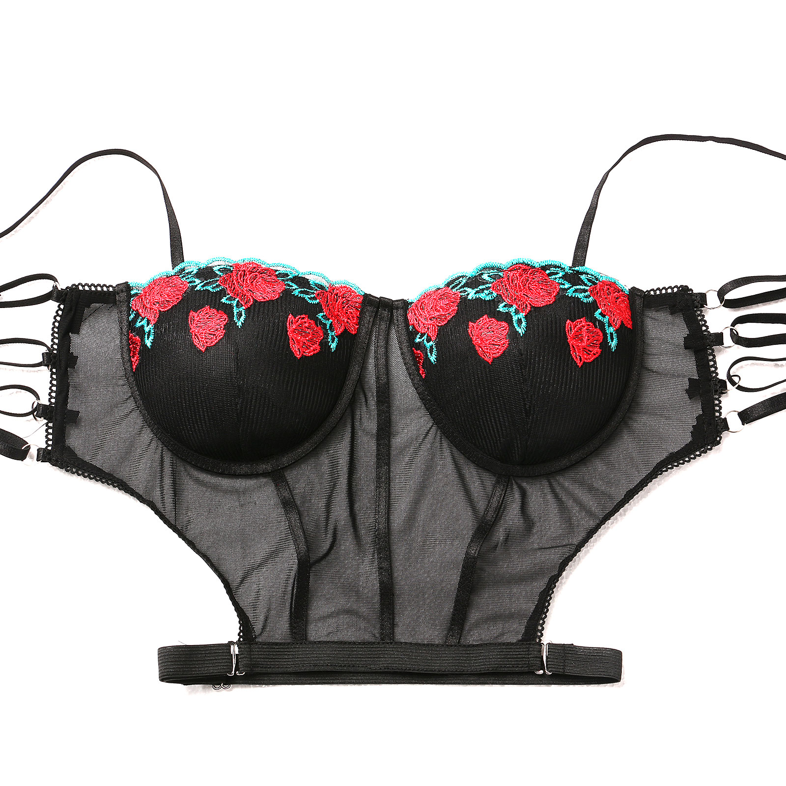 Сексуальный женский комплект, цветочный ремень, корсет с эффектом пуш-ап, бюстгальтер, перспектива, стринги, набор, перекрестная повязка, Эротическое нижнее белье, Дамский комплект