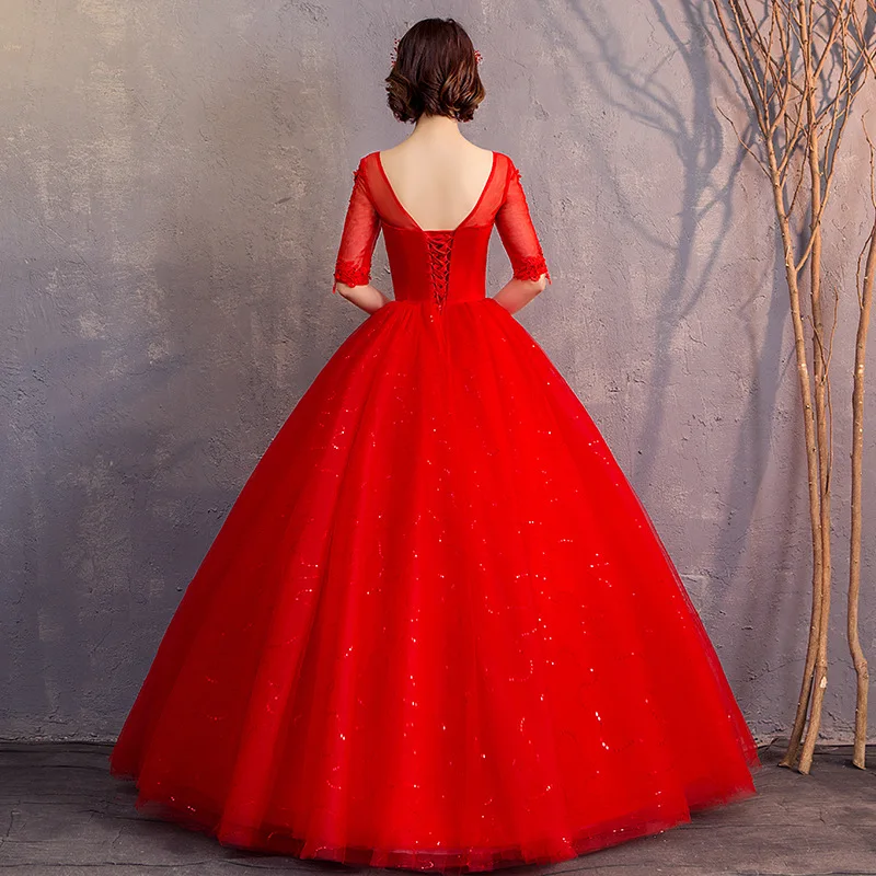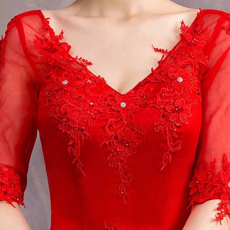 Свадебное платье Элегантное с v-образным вырезом красное кружево Половина рукава Империя вышивка блёстки длина до пола размера плюс свадебные платья для женщин G306