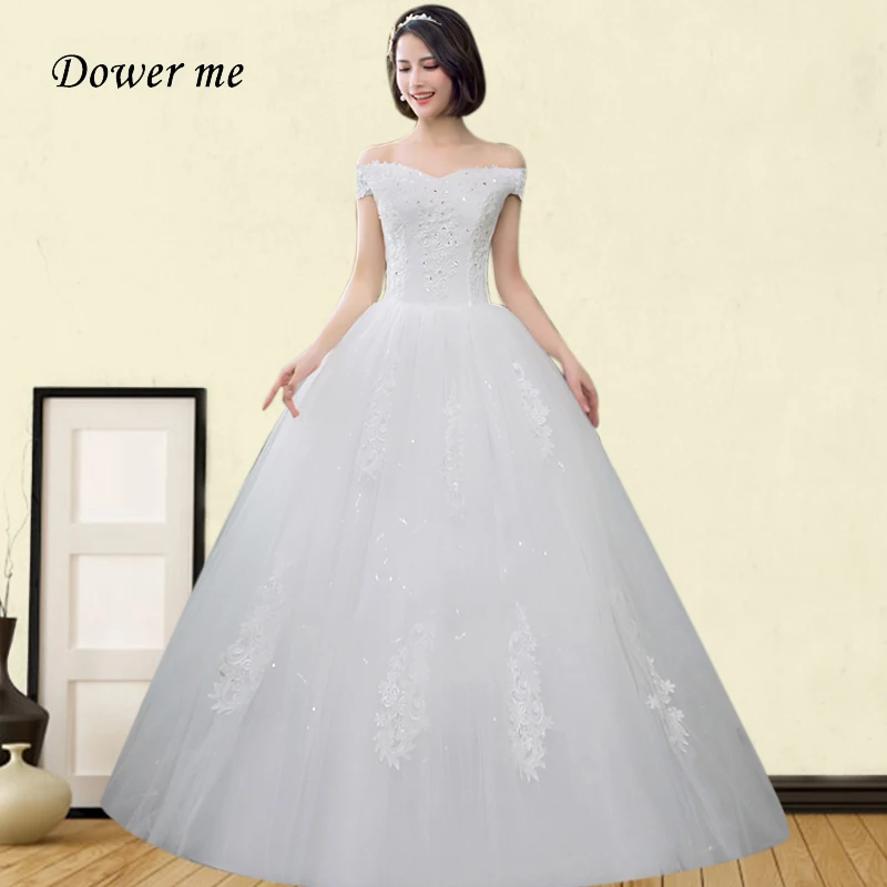 Торжественное свадебное платье es GR704 с вырезом лодочкой и вышивкой Vestidos De Novia, свадебное платье с открытыми плечами, белые свадебные платья на шнуровке