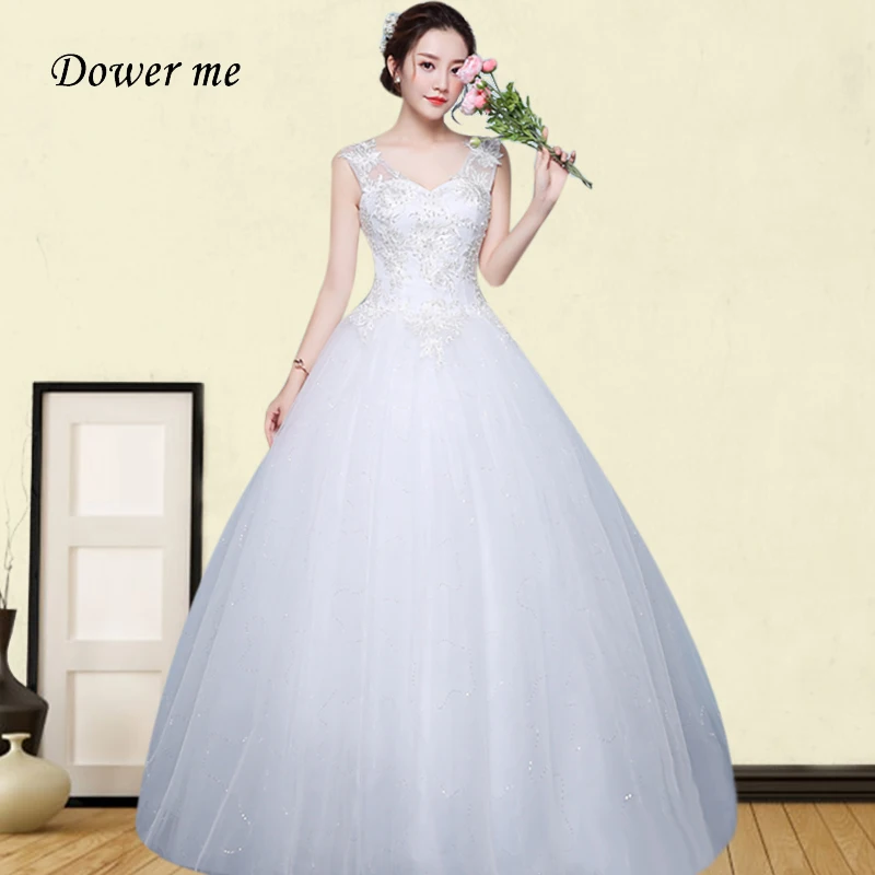 Свадебное платье с v-образным вырезом; GR685; Длинные свадебные платья без рукавов с вышивкой; Торжественное платье с аппликацией; Свадебное платье на шнуровке