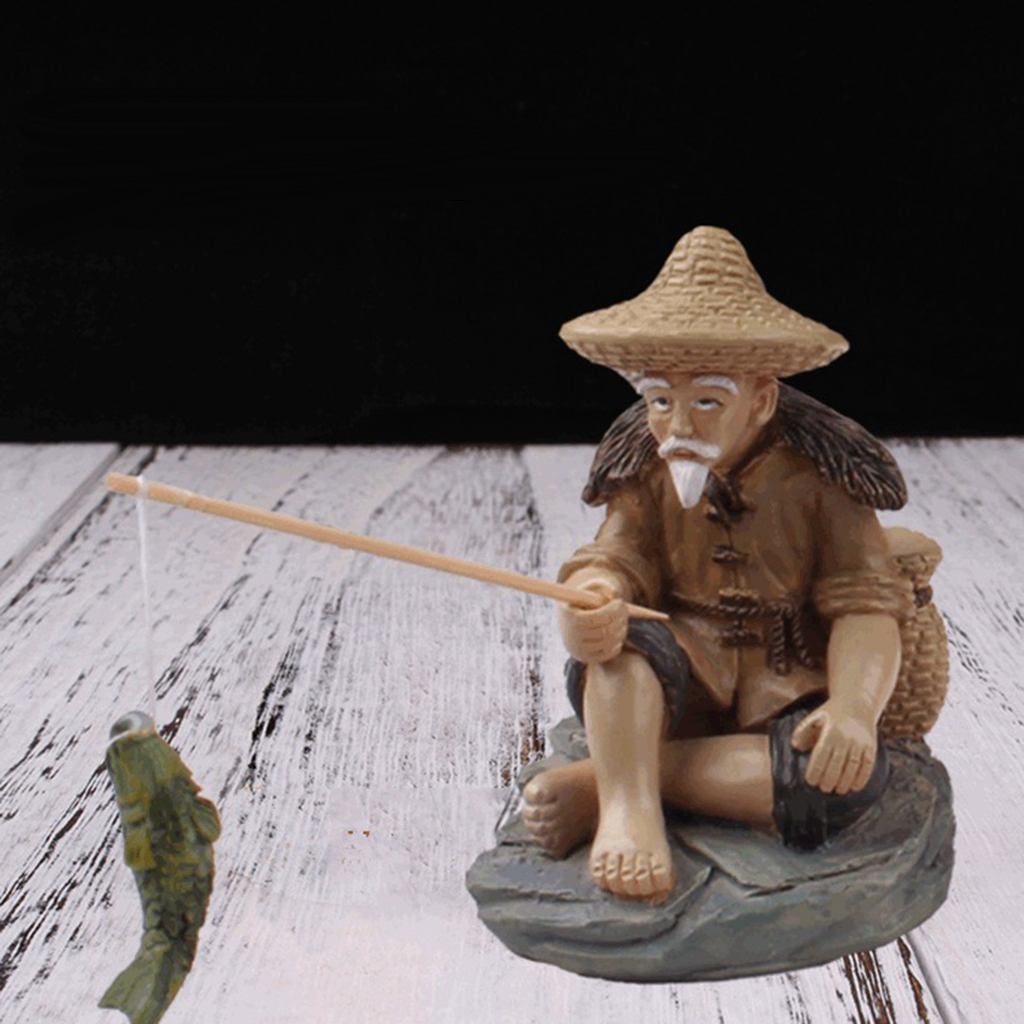 Украшение для бассейна: Миниатюрная статуя рыбацкого старика, отлично подходит для украшения вашего дома, вашего маленького цветочного горшка или любого другого места, которое вы хотите украсить.