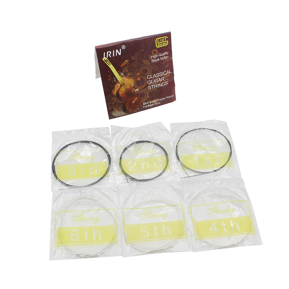 6x гитарных струн (3 шт. черные нейлоновые струны + 3 шт. Серебристые Металлические струны)