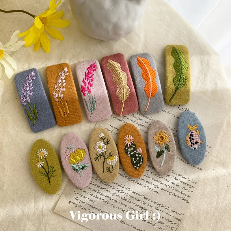 Заколка для волос с вышитыми цветами и животными для девочек, корейский головной убор, резинки, повязка на голову, аксессуары для волос, винтажная Бижутерия, мода