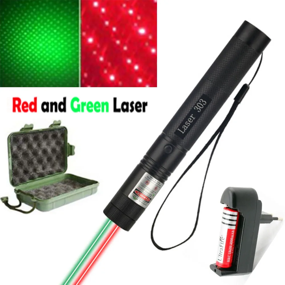 2 в 1 лазерная зеленая красная 303 двухцветная лазерная указка 5 мВт оборудование высокой мощности сжигание лазера с 18650 зарядным устройством