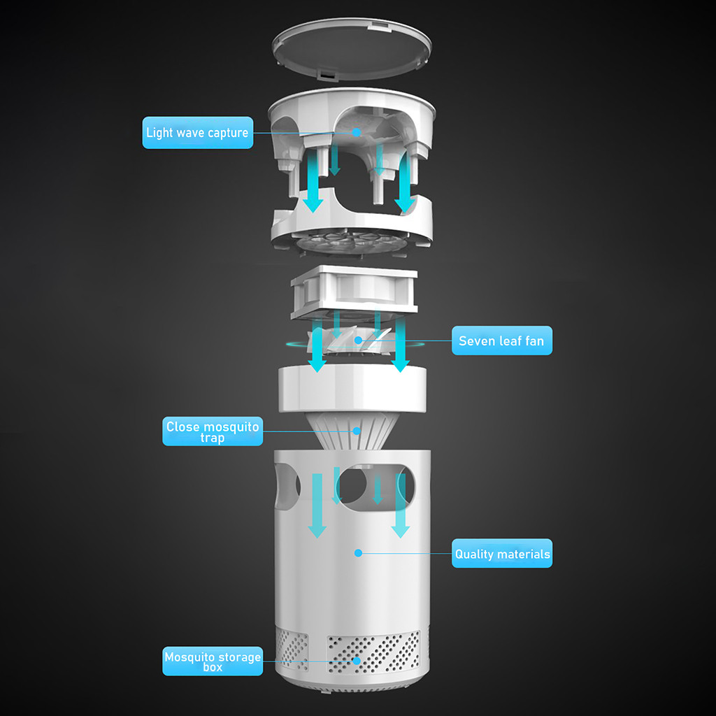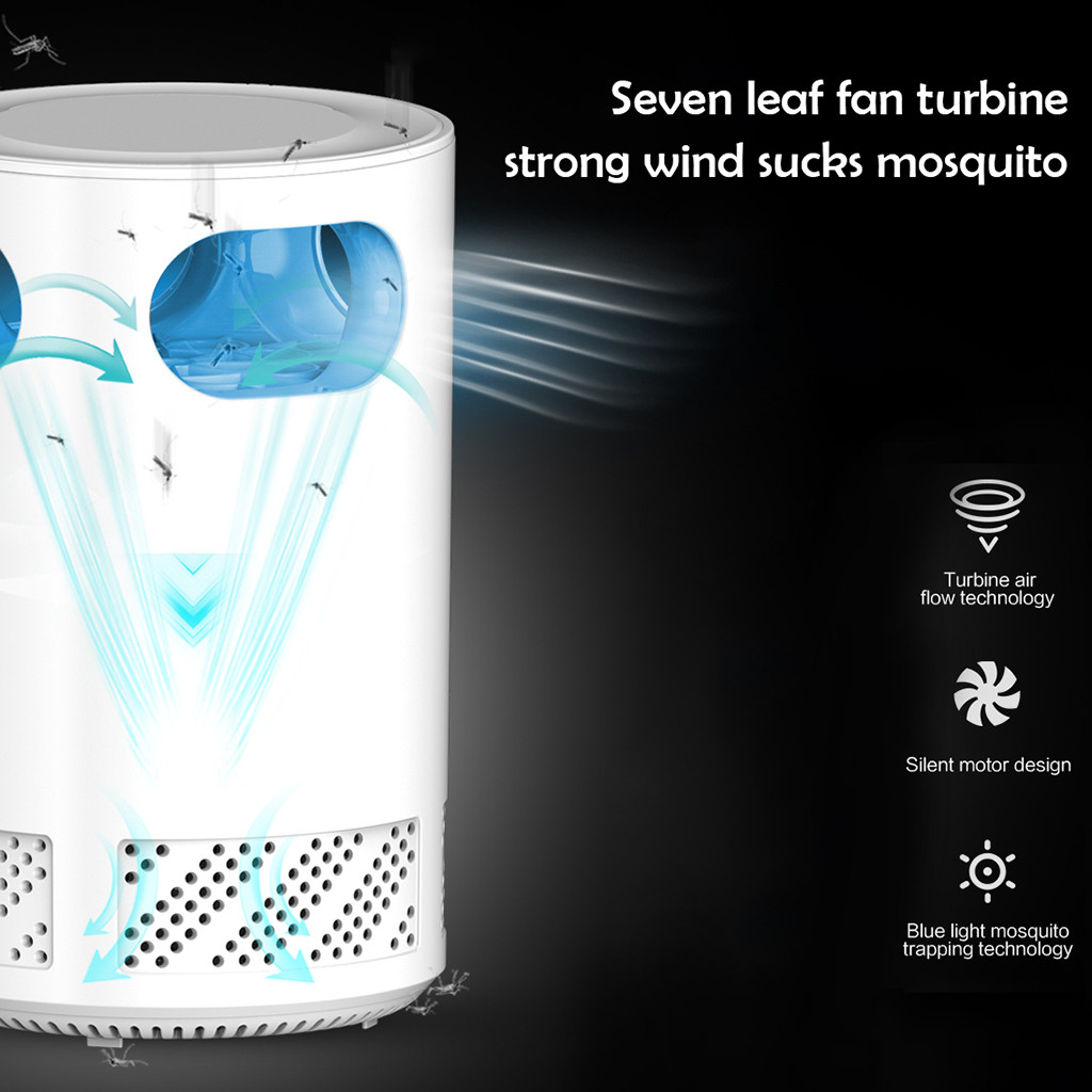 Использование стандартного USB Источник питания, вы можете включить ловушку от комаров через USB Розетка независимо от того, где вы находитесь, и ловить комаров в любое время, Где угодно. Чисто физический Защита от комаров, пожилых людей и детей без каких-либо вредных веществ Вещества могут использовать его с уверенностью. Умный светильник Контроль ловли и ловли комаров с синий светильник волны Создайте хорошую домашнюю среду. Компактный, маленький И мощный, подходит для различных сцен, легко носить с собой. Вентилятор с семью листьями Используется, чтобы закрыть капюшон от комаров, который очень эффективен в ловле И убивает комаров. Светодиодный ночник Технология снижения уровня шума, высокая степень сочетания Технология и искусство, большая площадь покрытия комаров защищает весь Семья.Параметр