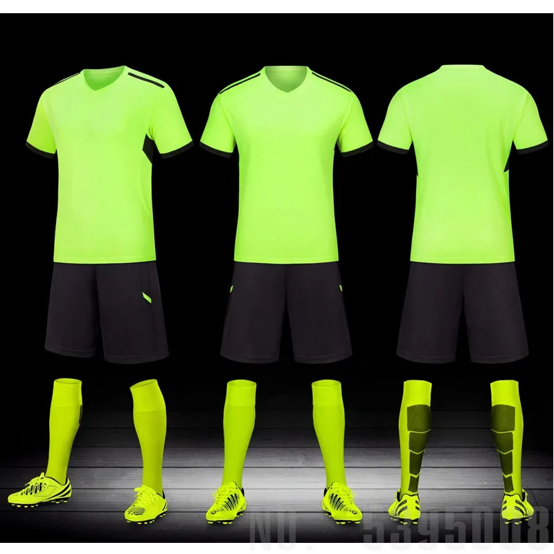 В комплекте: 1 рубашка и 1 шортыМатериал: 95% полиэстер, 5% спандексОсобенности: Быстросохнущий и дышащийИндивидуальный заказ: имя, номер, логотип, спонсорЦвет: 6 цветов, цвет sРазмер: S/M/L/XLПодходит: футбольный матч; Тренировка по футболу