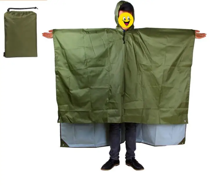 Это пончо-не только дождевик, но и может использоваться в качестве палаточного коврика или солнцезащитного козырька. Изготовлен из высококачественного полиэфирного материала 210D, водонепроницаемого и легкого. Это идеальный вариант для кемпинга на открытом воздухе, альпинизма, альпинизма, пикника и т. д.