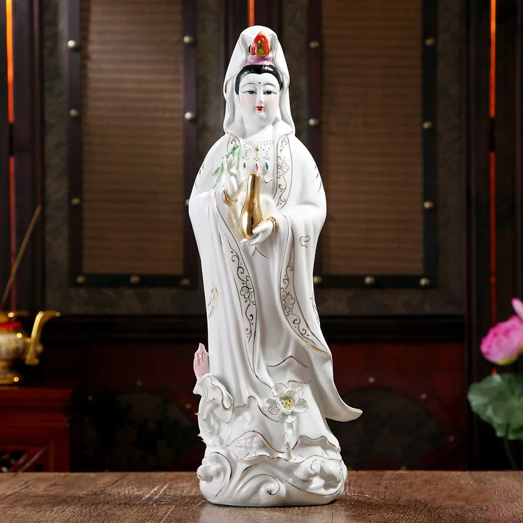 Белый фарфор, Гуаньинь Авалокитешвара, скульптура Будды, керамический орнамент, статуя, Kwan-yin Bodhisattva высота 30 см