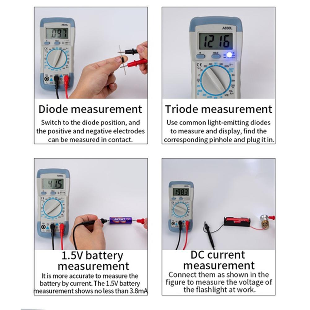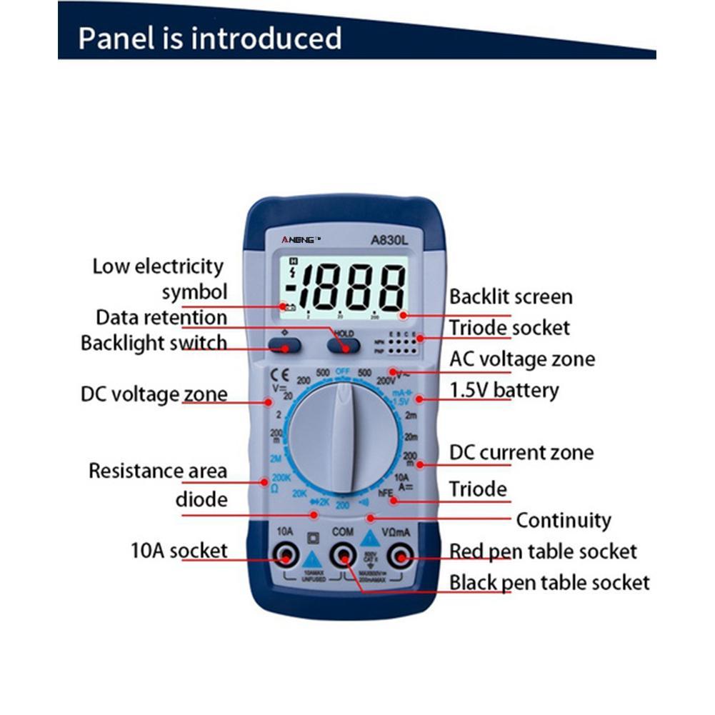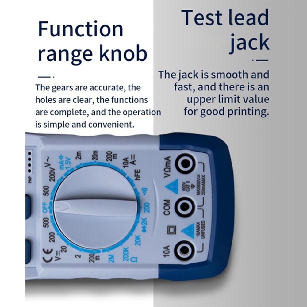 1. Измеритель представляет собой Ручной цифровой мультиметр 31/2 для измерения напряжения переменного/постоянного тока и переменного/постоянного тока, сопротивления, диодов, транзисторов, freguency, температуры, емкости и непрерывности теста с батарейным питанием.