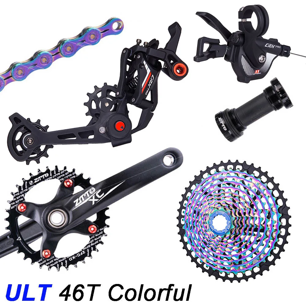 11 скоростей 11-46T кассета с радугой + 116 звеньев Радужная EL цепь + 11 S переключения передач и переключения передач + рукоятка