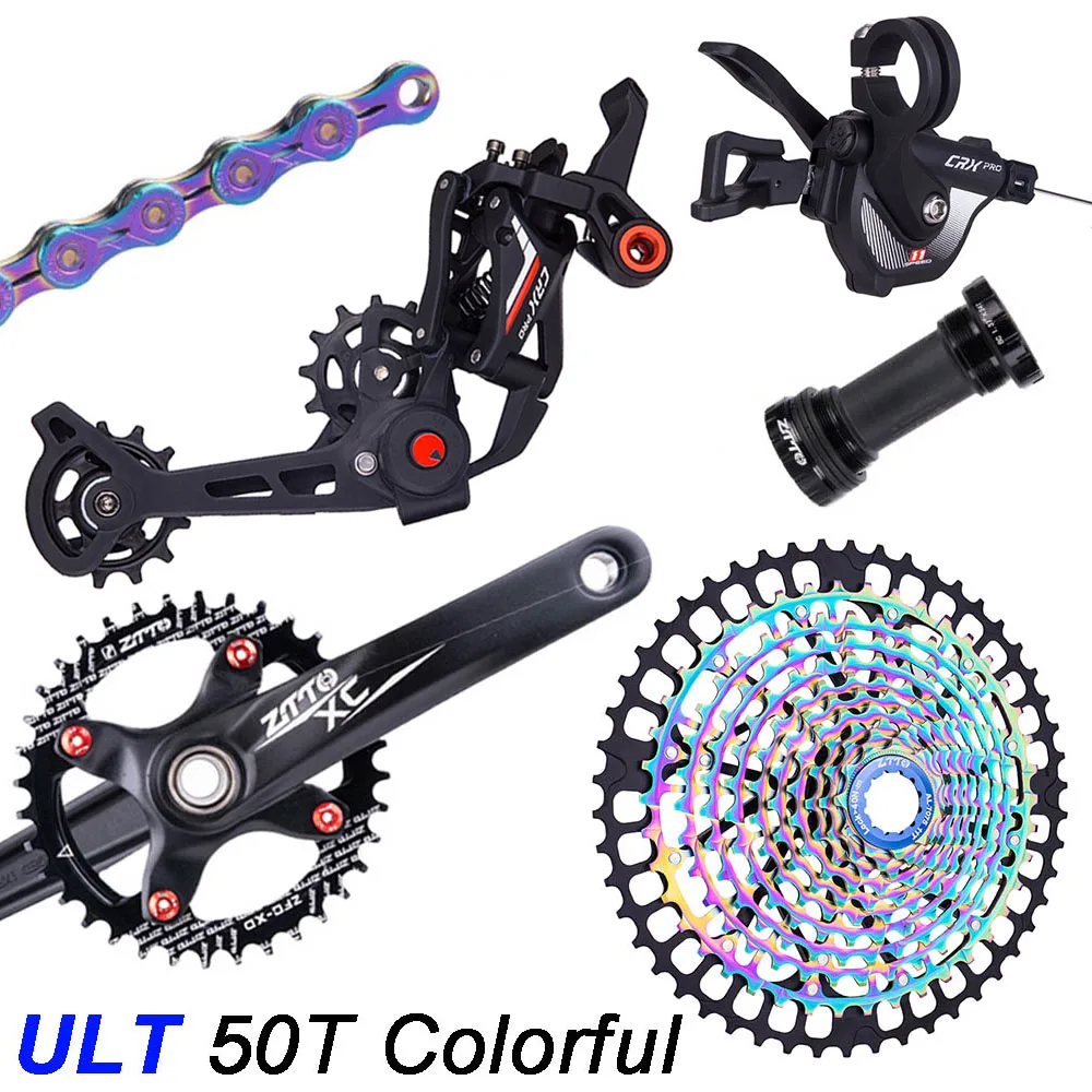 11 скоростей 11-50T кассета с радугой + 116 звеньев Радужная EL цепь + 11 S переключения передач и переключения передач + рукоятка
