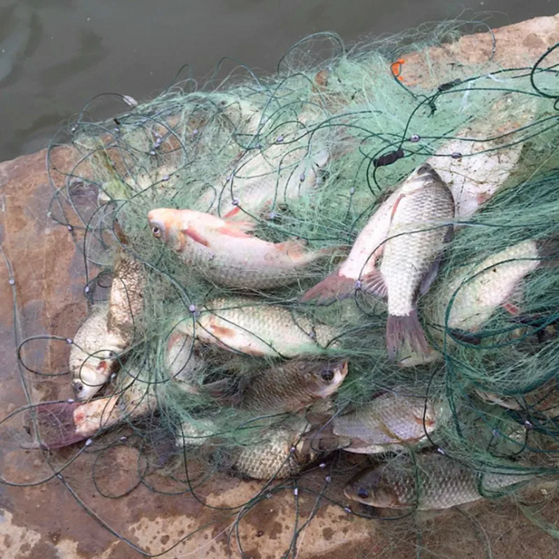 Specification: Material: Nylon, Lead, EVA Size: 20m x 1.2m / *straightening length* Net Hole Size: 1cm x 1cm Package Includes: 1 Piece Fishing Gill Net Description: Made of high quality nylon material, tough and strong, invisible underwater. Do not pull the fishing net too tight, let the net to keep loose in the water, so the fishing effect will be better. A float under a float floating head according to the order when the net, not offside. The hand braided float, not easy to fall off, does not absorb water, high buoyancy. High density lead sinker, fast sinking, are tightly stitched to the bottom line by hand, will never lose. Can also be used under good nets or bamboo beat the water still ran up the stone and let the fish play "catch fish" effect. Single Nets: Only one layer mesh, mounted above the float. 18m x 1m Fishing Net Single Mesh Nylon Durable Float Trap Monofilament Gill Net Fishing Accessories for Hand Casting 1x1 (mesh diagonal straightening 2-2.5cm) reference fishing range: Pelteobagrus fulvidraco, Carassius auratus, white striped fish, etc 2 x 2 (mesh angle straightening 4cm) reference fishing range: Carassius auratus, etc. (about 100-400g) 3x3 (mesh angle straightening 6cm) reference fishing range: large crucian carp, tilapia, bream, small four big fish, etc. (about 500-1000g) 4x4 (mesh angle straightening 8cm) reference fishing range: carp, silver carp, bighead carp, herring, grass carp, etc. (about 500-2500g)