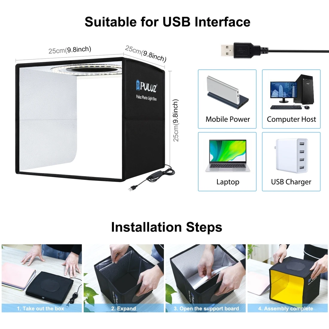 PULUZ 25 см складной портативный 3 цвета светильник режимов кольцо светильник фото светильник для студийной съёмки палатки коробка с 6 х двухсторонних цветных фонов, размер: 25 см x 25 см x 25 см