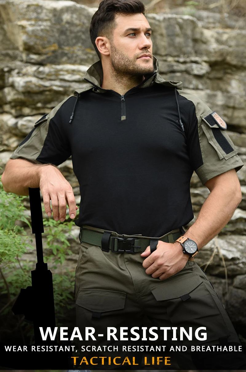 Мужская Тактическая Военная футболка HAN WILD, армейские военные рубашки с капюшоном, одежда для охоты, походные футболки для кемпинга, водонепроницаемые