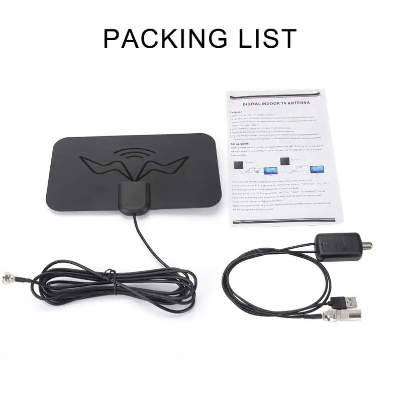 2. Цифровая антенна HDTV с коаксиальным кабелем длиной 16,5 футов, усилителем сигнала, запасной стикер, простая и удобная в использовании.
