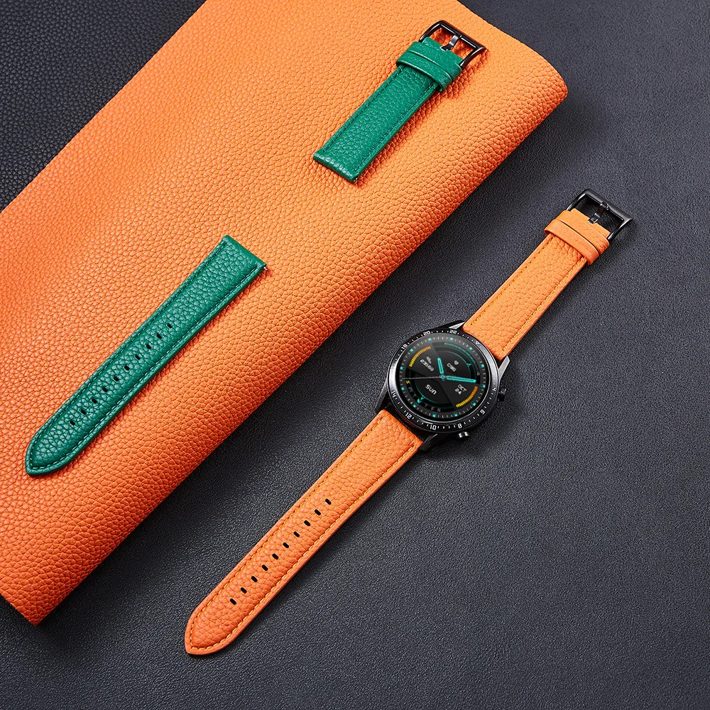 Кожаный ремешок с рисунком личи для HUAWEI GT 2/Amazfit GTR GTS/Samsung Galaxy Watch 3/Oneplus/Xiaomi, 22 мм 20 мм