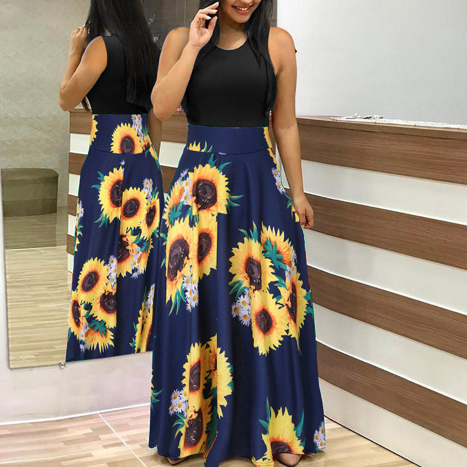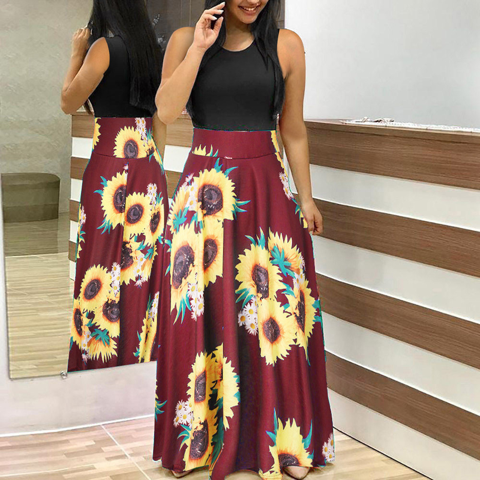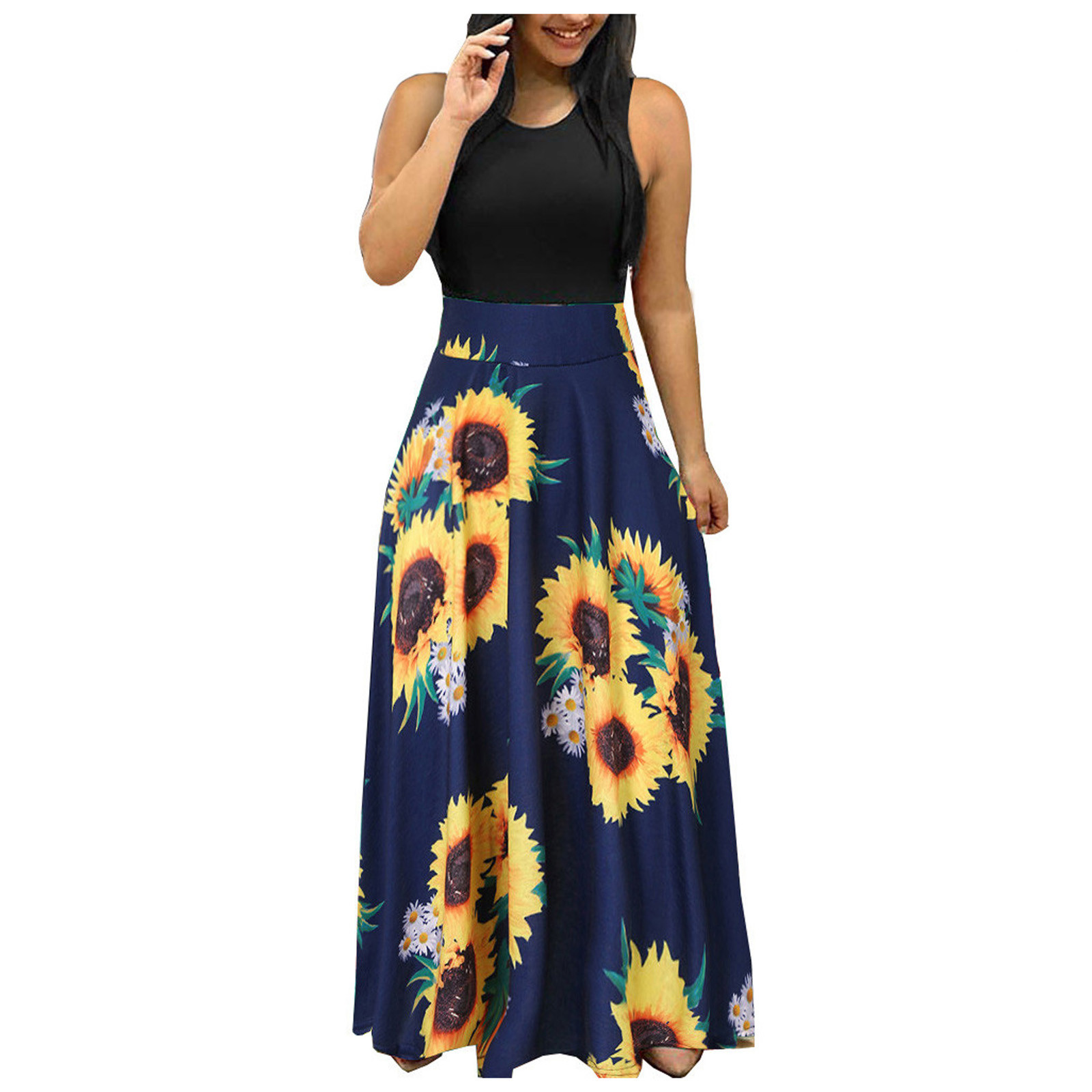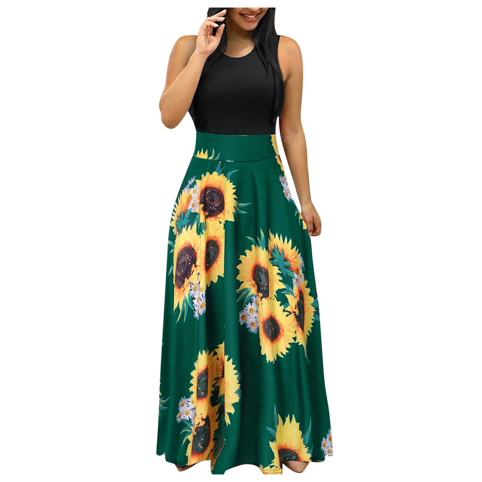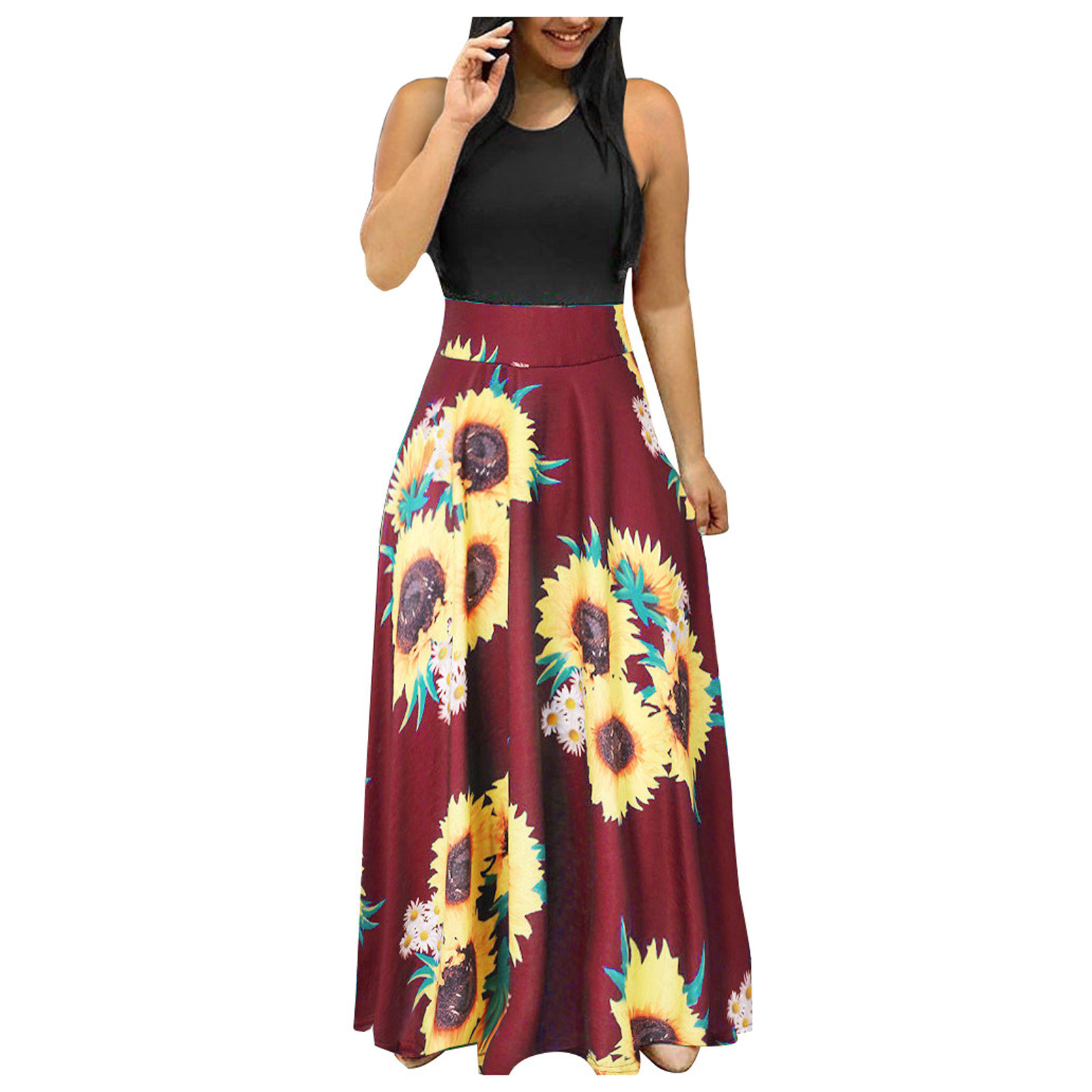 Женский летний сарафан с коротким рукавом и цветочным принтом, повседневное Свободное платье, платье Макси