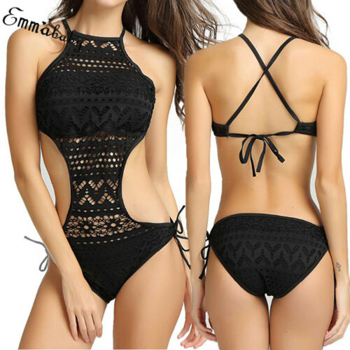 2021 Sexy Hollow Out Women's Swimsuit Bodysuit Push-Up Bikini Suit Swimwear Solid Color Lace Female Beachwear Bathing Suits