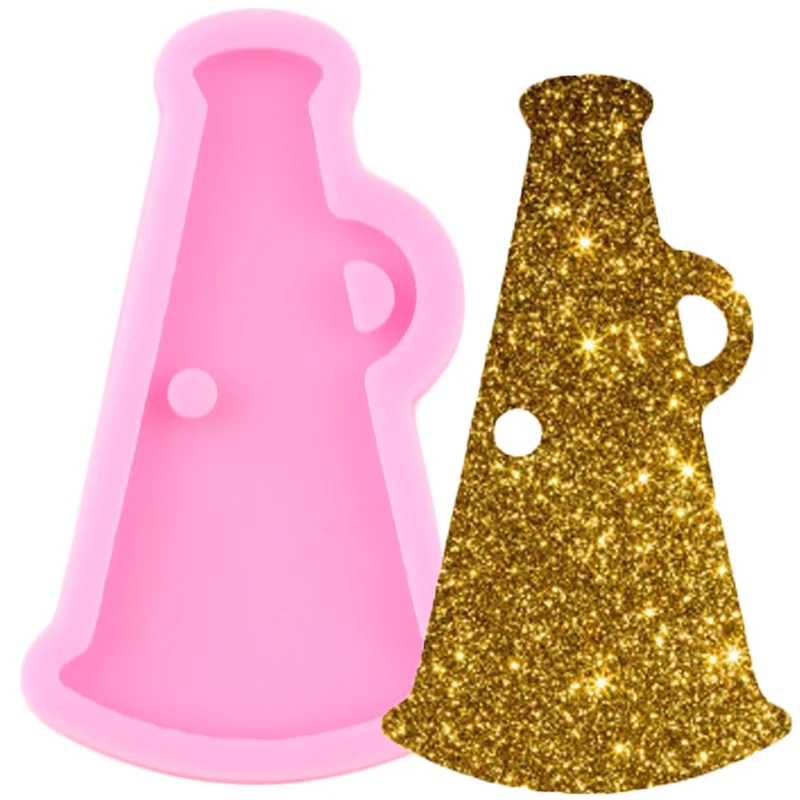 Блестящий Cheer с рупором, брелки для ключей, пресс-форм Рог силиконовые формы "сделай сам" для изготовления ювелирных изделий, блеск эпоксидной смолы пресс-форм