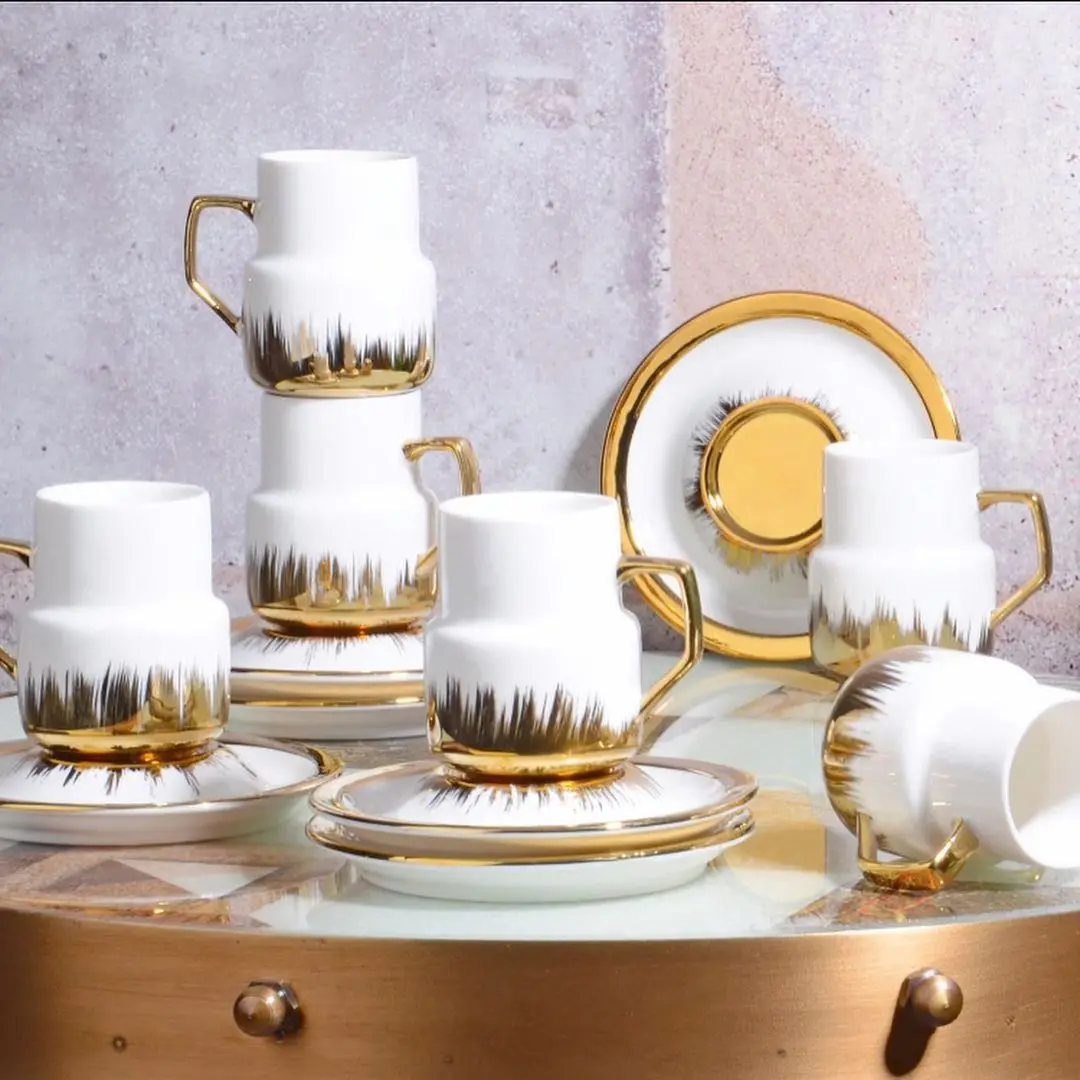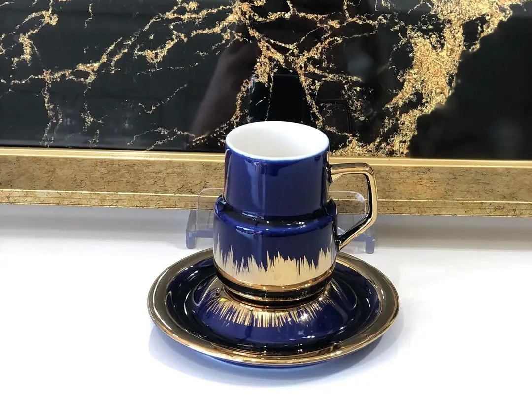 Набор фарфоровых чашек для косовских чашек из 6 предметов, Роскошная золотая кость, креативная фарфоровая чашка и блюдце, керамические кофейные чашки современного дизайна