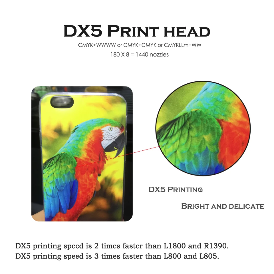 ONEVAN Фирменная новая технология:-Автоматическая регулировка высоты печатающей головки-интеллектуальная система защиты от царапин-уникальная горизонтальная загрузка платформы-система контроля по требованию-безопасная система охлаждения воды-чернильная сухая мгновенная УФ-светодиодная система. -Система непрерывной подачи чернил-его система