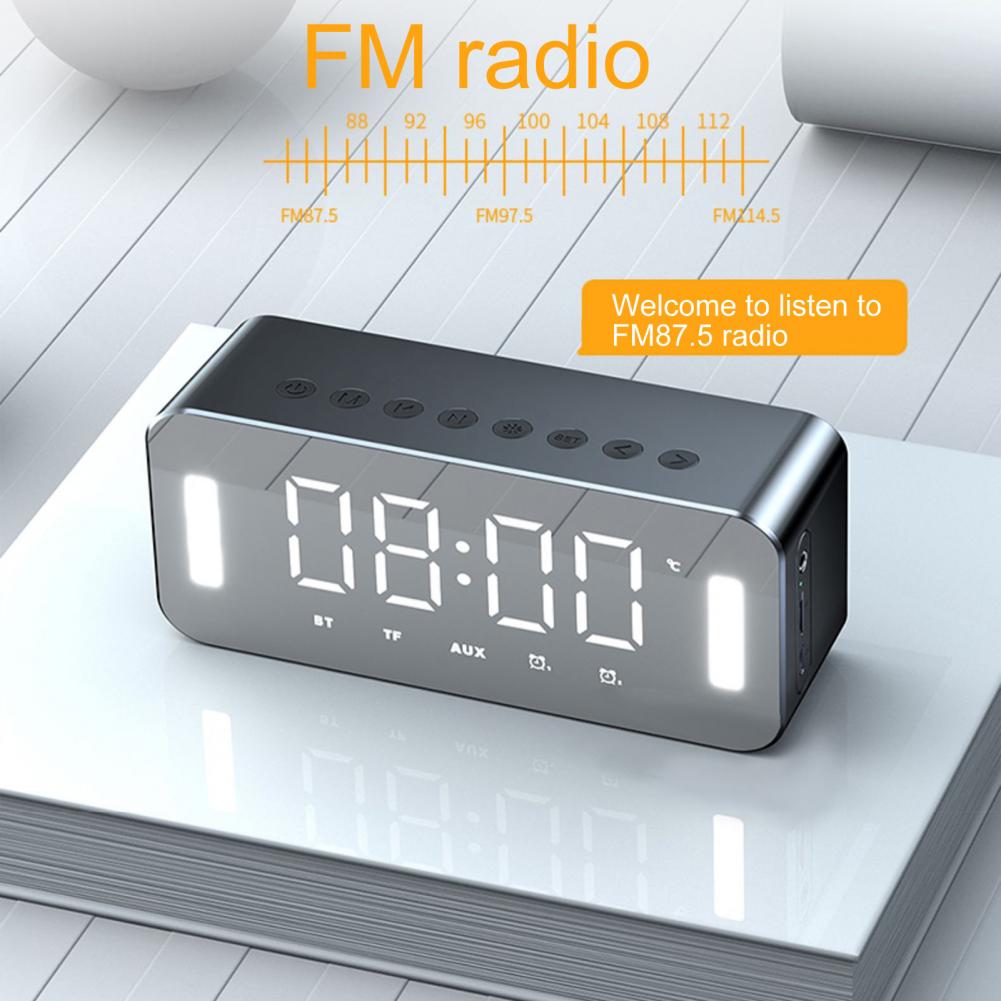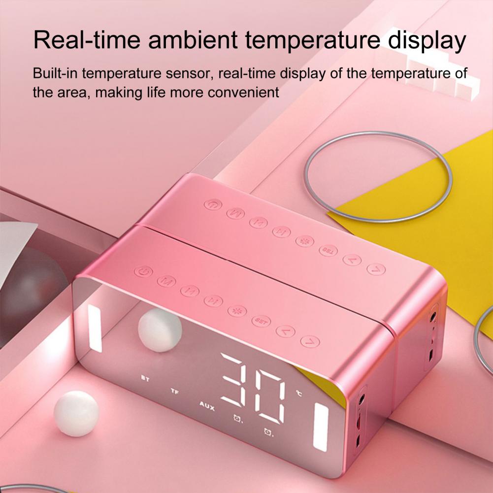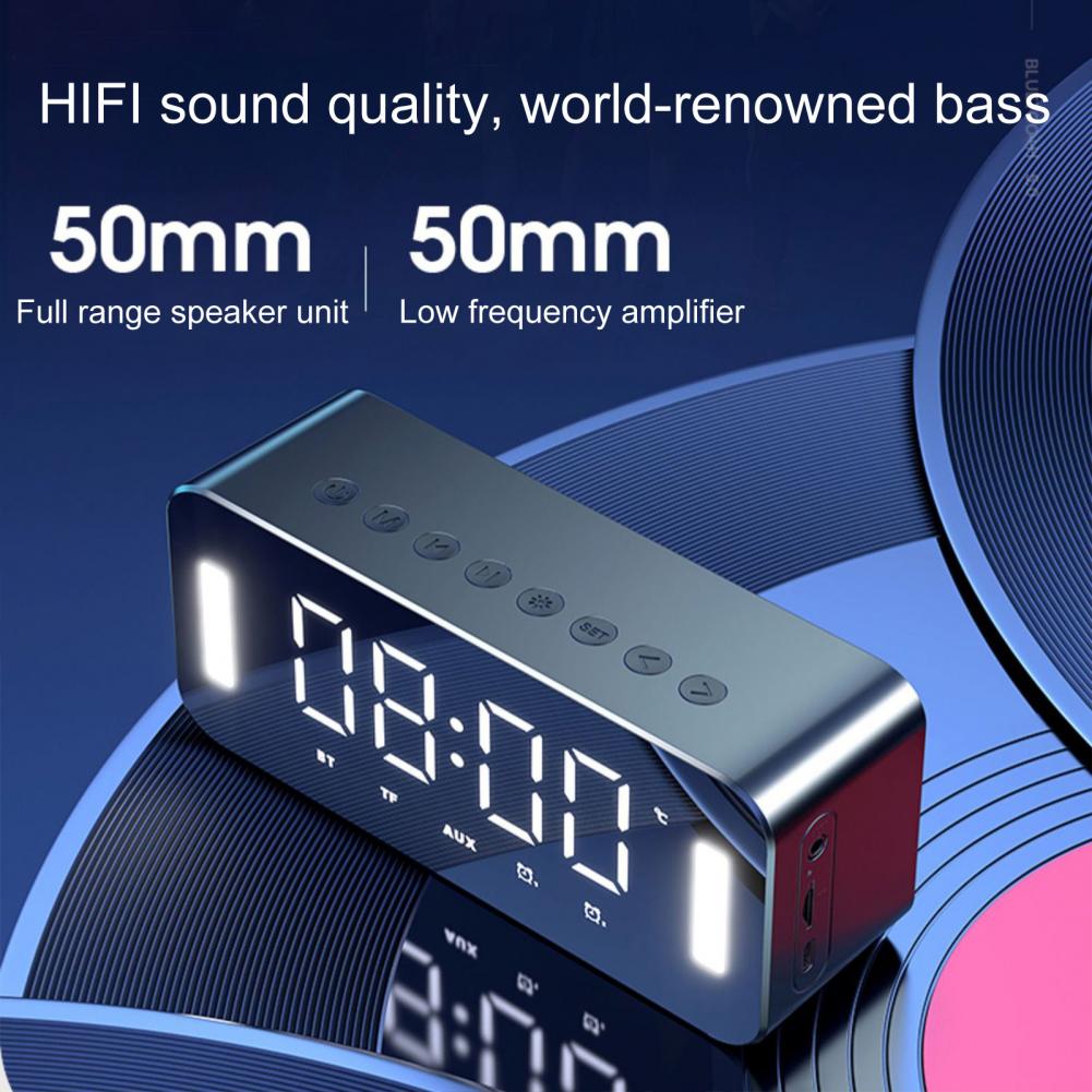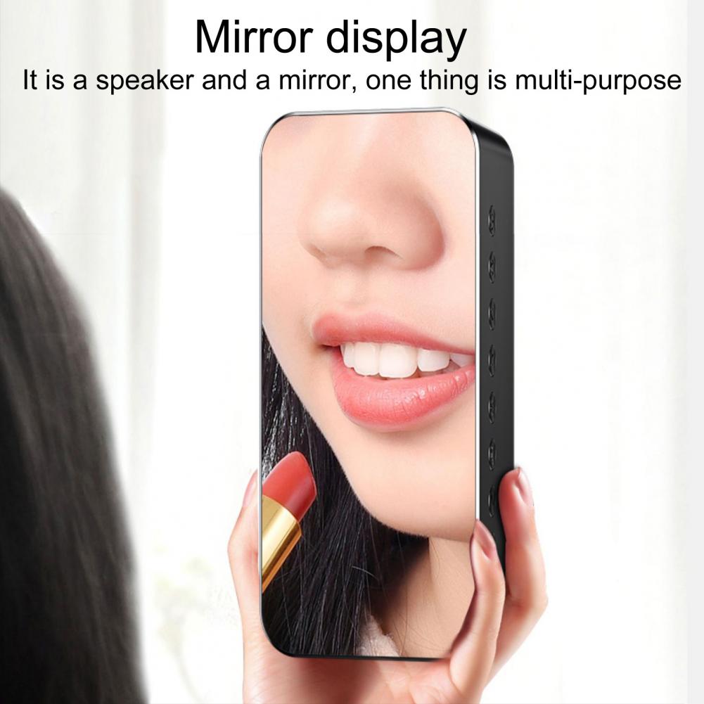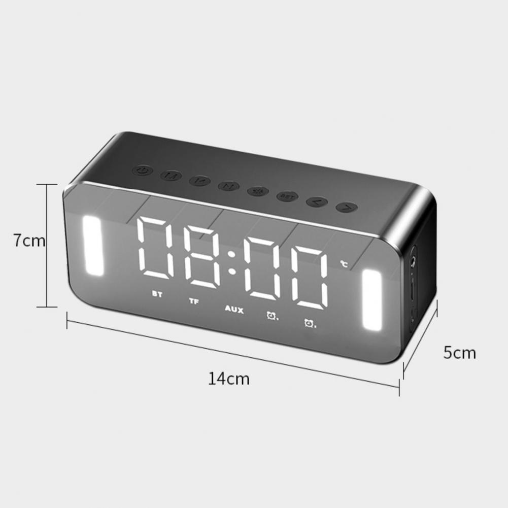 Длина беспроводного динамика 14 см, ширина 7 см и высота 5 см. Bluetooth-динамик также может использоваться в качестве будильника или зеркала.