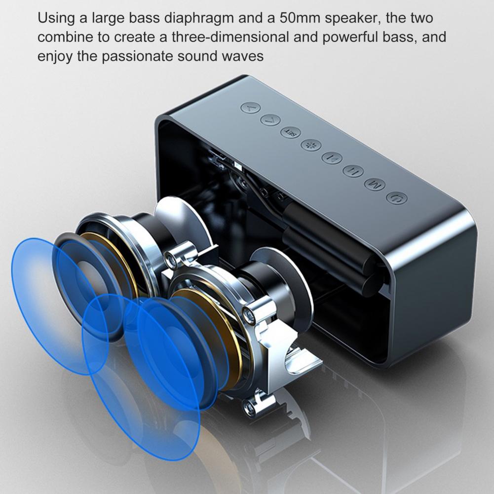 Высокая производительность обеспечивается чипом Bluetooth 5,0, который также имеет пространство для передачи 10 м. Вы можете наслаждаться отличным стереозвуком и мощным звуковым эффектом басов. Динамик Bluetooth отличается изысканным мастерством.