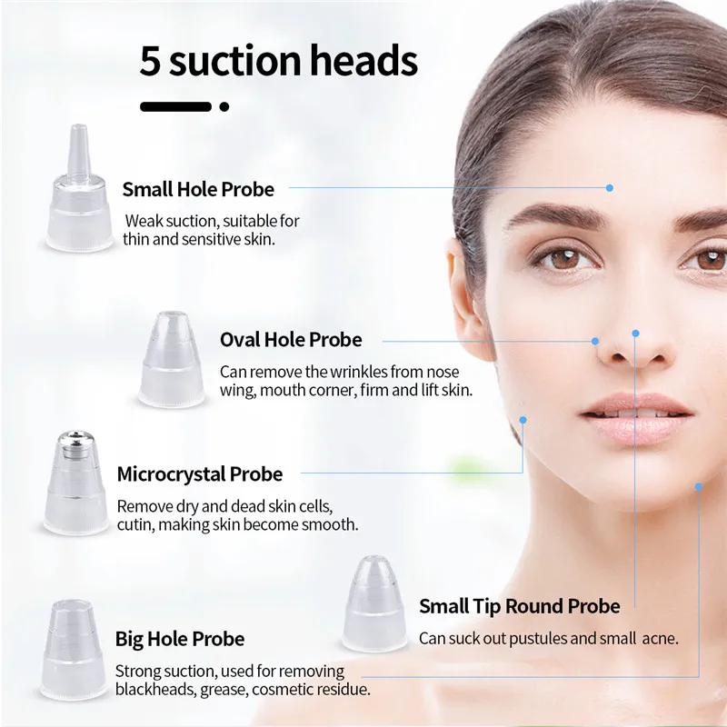 1. Оснащен Мощное всасывание, Наша маска для удаления угрей может очистить и черных точек, пятен и следов от акне и эффективно уменьшает поры, разглаживает мелкие морщинки, подтягивает кожу вашей кожи.