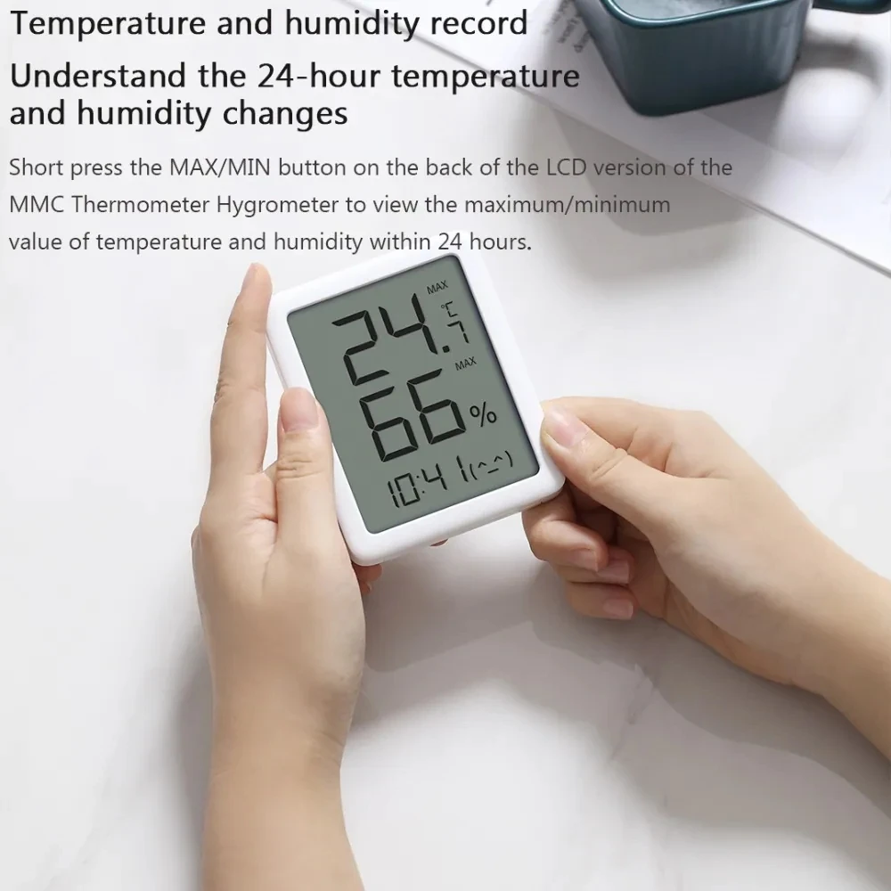 1. Большой ЖК-дисплей домашний гигрометр, данные могут быть четко прочитаны в различных яркости и угла.