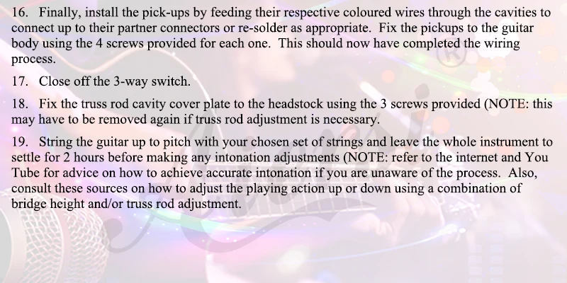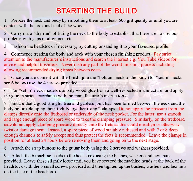Этот набор содержит все, что вам нужно для создания полной, играемой гитары, за исключением вашего выбора отделки.