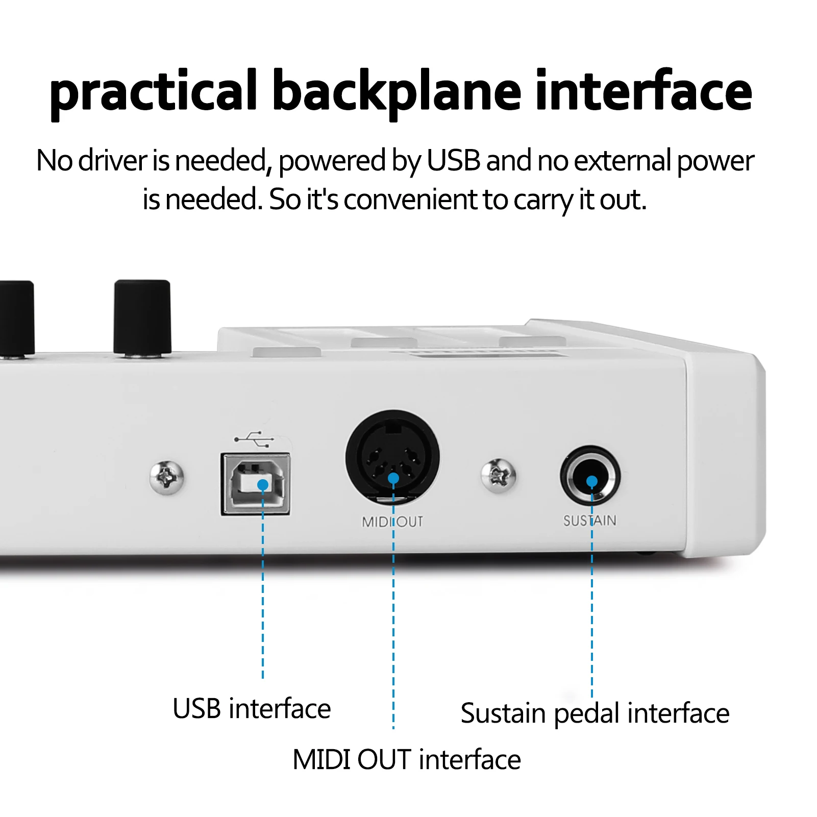 Имеет много функций и прост в использовании. С usb-подключением вы можете наслаждаться музыкой, когда захотите. Включенный В Комплект руководство пользователя поможет вам быстро понять особенности и операции этой миди-клавиатуры.