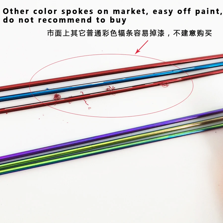 Материал: материал для спиц из нержавеющей стали, обработка поверхностного вакуумного покрытия спицами (технология не водяного покрытия, покрытие водой легко снимается) CN спицы высокой стоимости и хорошей прочности, шанс сломать даже лучше, чем некоторые цены ниже, Спицы трех юаней являются хорошим выбором, чтобы сделать соотношение колеса.