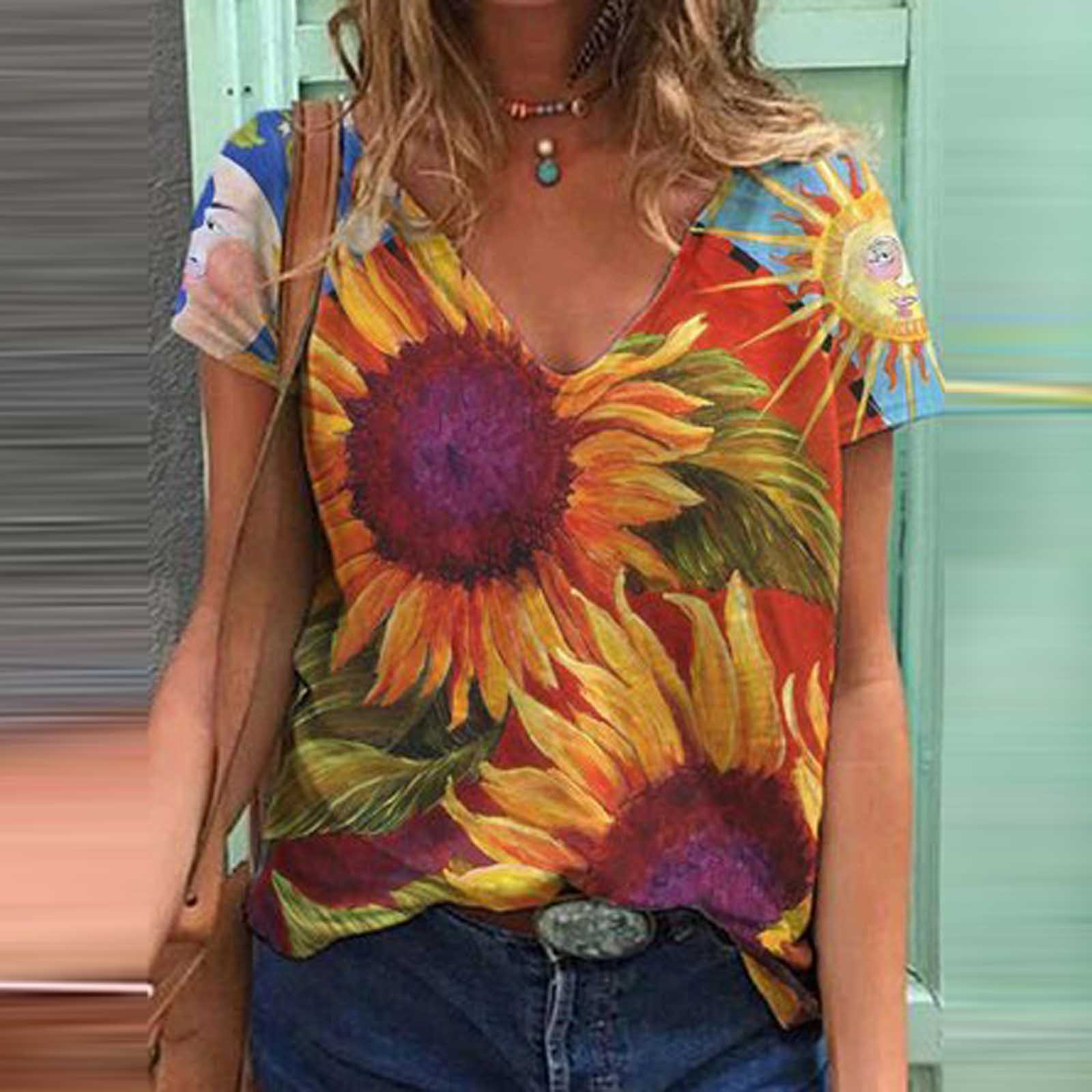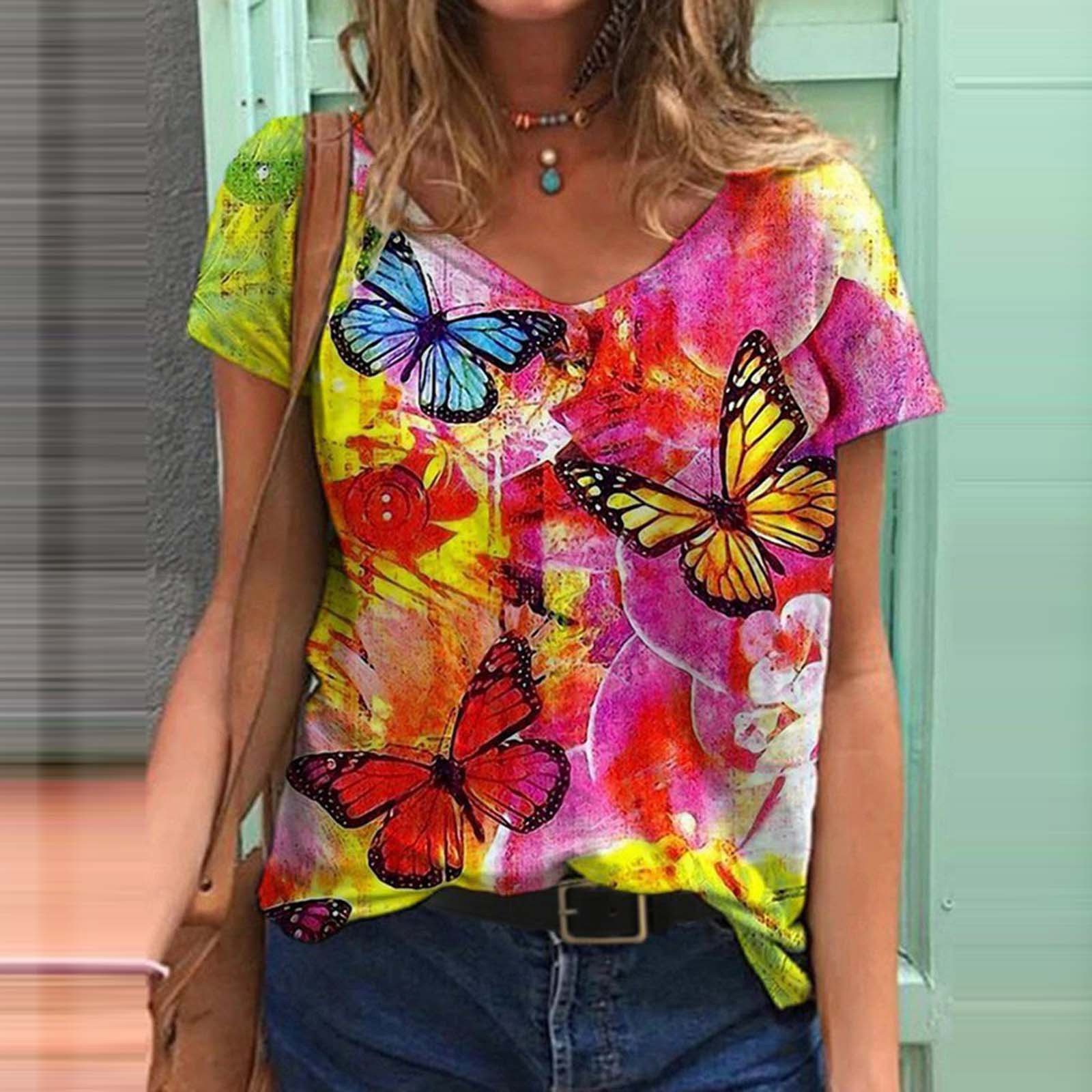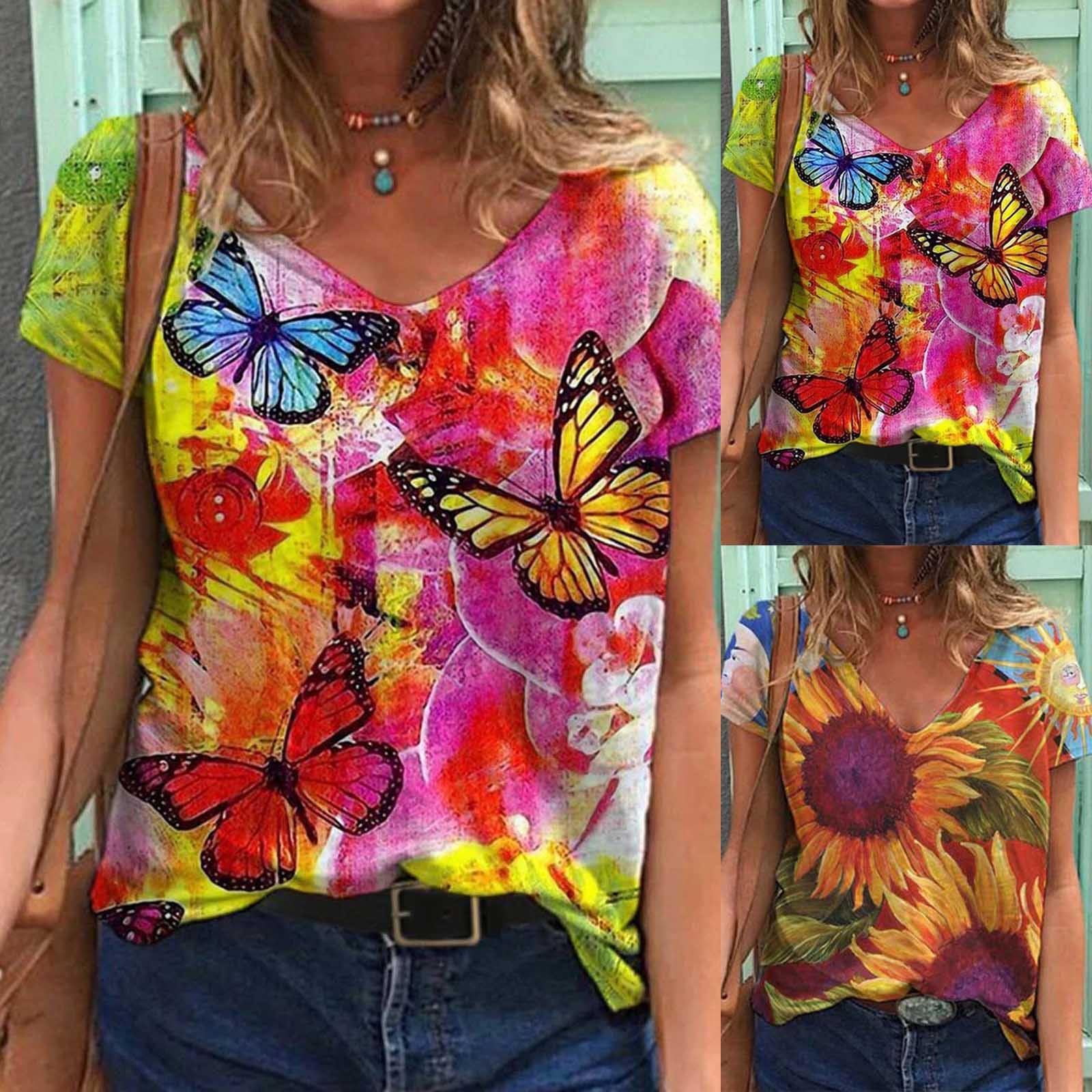 Особенности: Повседневная Блузка с короткими рукавами, v-образный вырез, футболка, женские топы, лето.