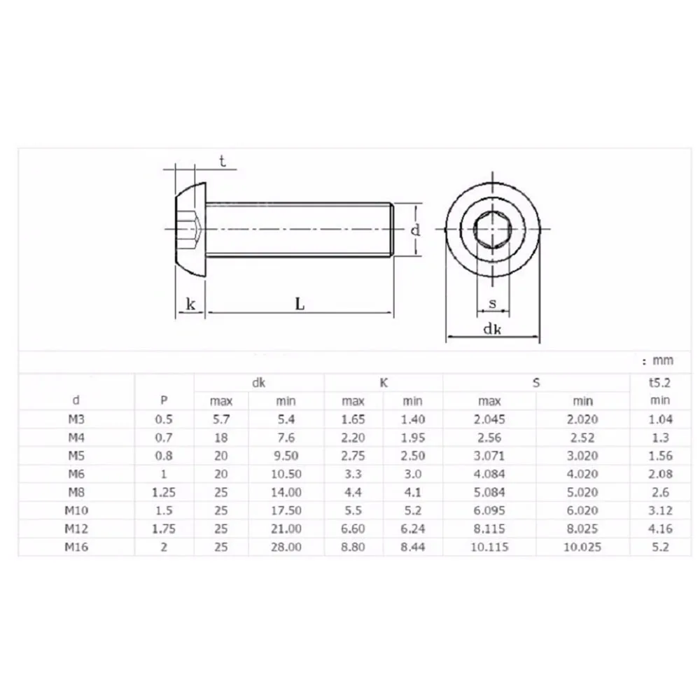 M4 4 мм A2 304 нержавеющая сталь кнопочный болт с шестигранной головкой винт из нержавеющей стали круглый/головка сковороды M4x6/M4x8/M4x10/M4x12/M4x16/M4x20