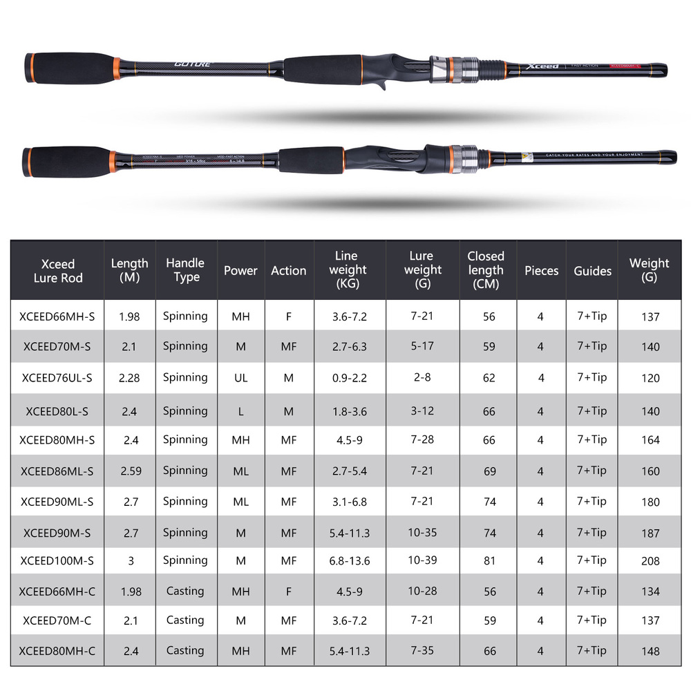 Goture Xceed 4 секции спиннинговое литье FUJI удочка 6Ft-10Ft 5-39 г углеродное волокно MH M портативные удочки для путешествий рыбалки