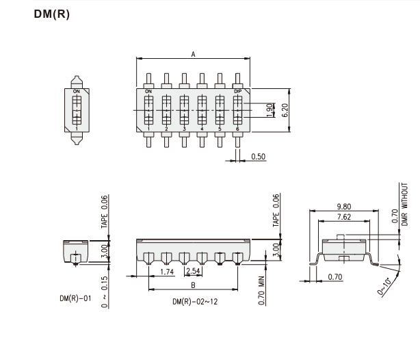 Тайвань Yuanda DIP DM-02-V-T/R DIP переключатель 2-позиционный ключ Тип 2P плоский циферблат SMD 2,54 мм 2-позиционный переключатель оригинальный аутентичный с детальным чертежом размера данных
