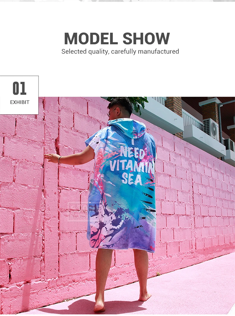 Микрофибра для серфинга пончо также имеет характеристики хорошего поглощения воды, быстро сохнет, компактный, легкий, легко носить с собой во время путешествия.