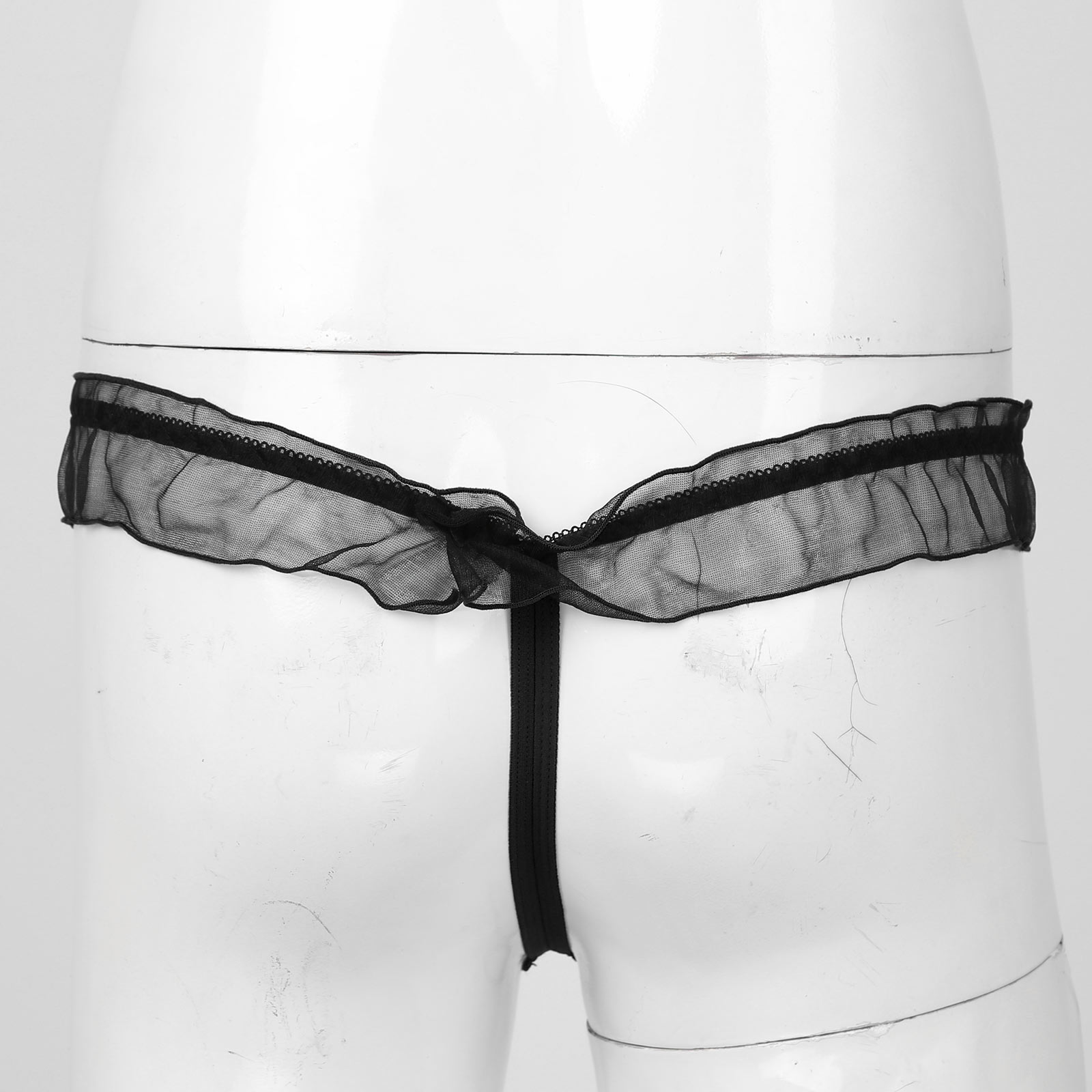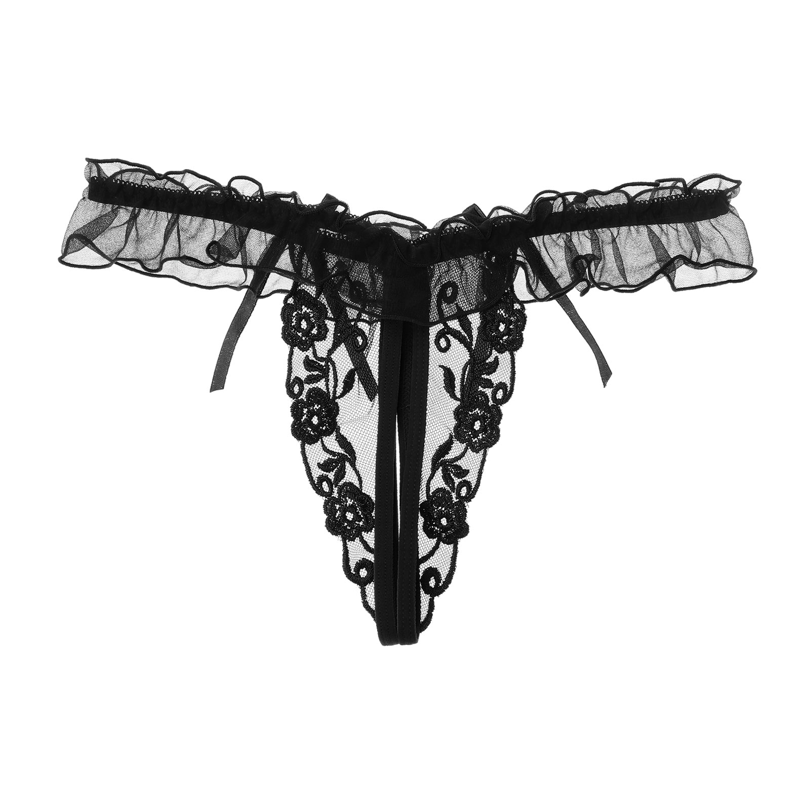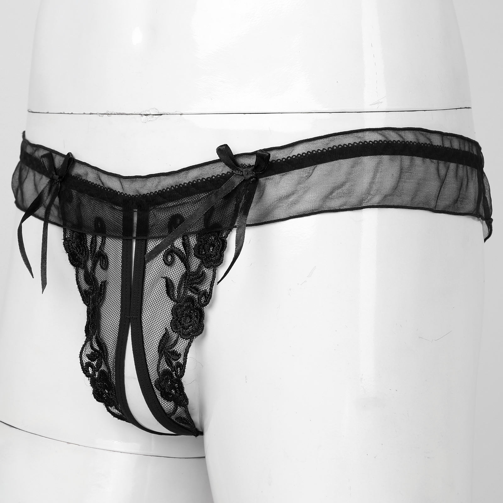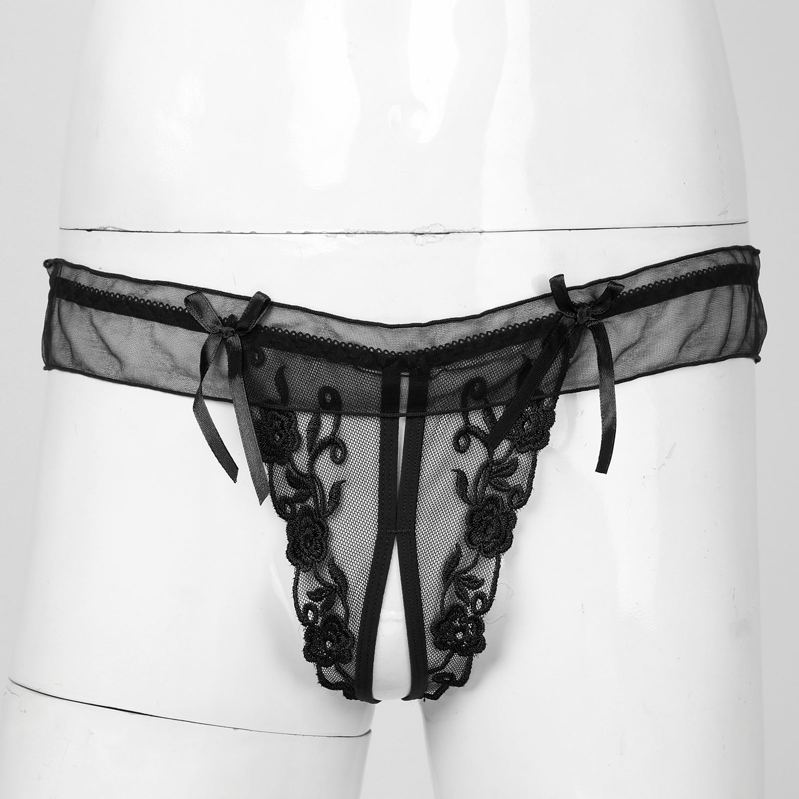 Мужские стринги с цветочной вышивкой, кружевной отделкой и бантиком на спине.