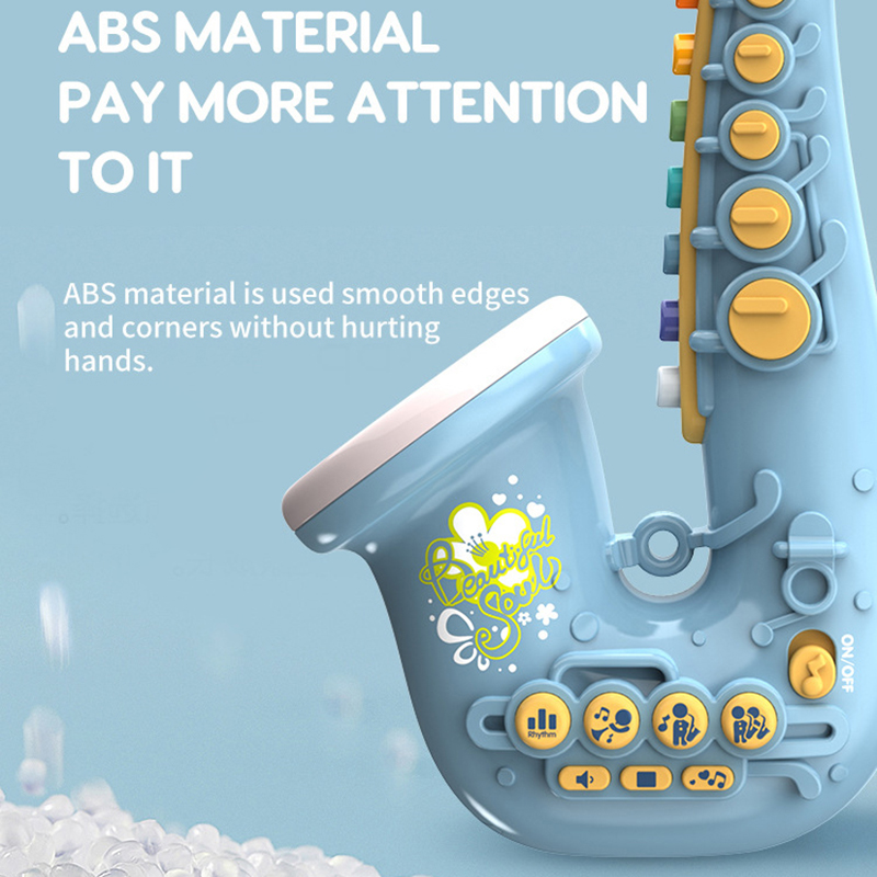 Саксофон: можно играть, 8 весов можно играть в полную песню, 7 функциональных кнопок: ensemble/solo/Wind (10 песен)/rhythm (6 песен)/Детские песни (10 английских песен)/Пауза/громкость (5 файлов). Ensemble/solo для автоматической демонстрации, синхронного переключения; Выдувание для следующего режима, необходимо сотрудничать с выдувом, с освещением