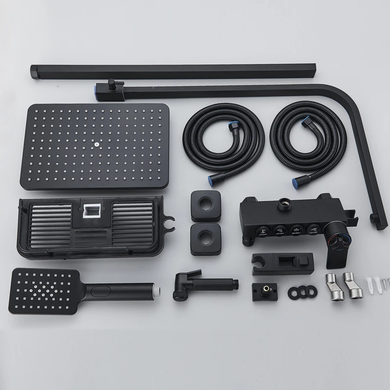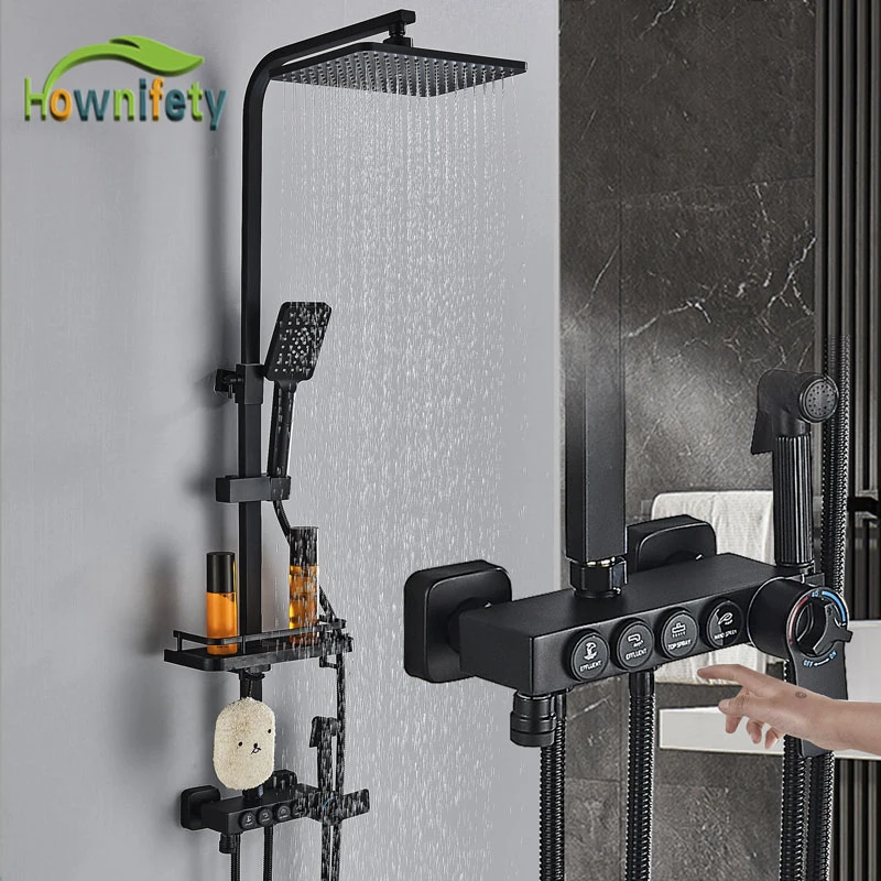 Черный смеситель для душа для ванной комнаты 3/4 кнопочный переключатель термостатический или горячий холодный смеситель для душа цифровой дисплей с полкой