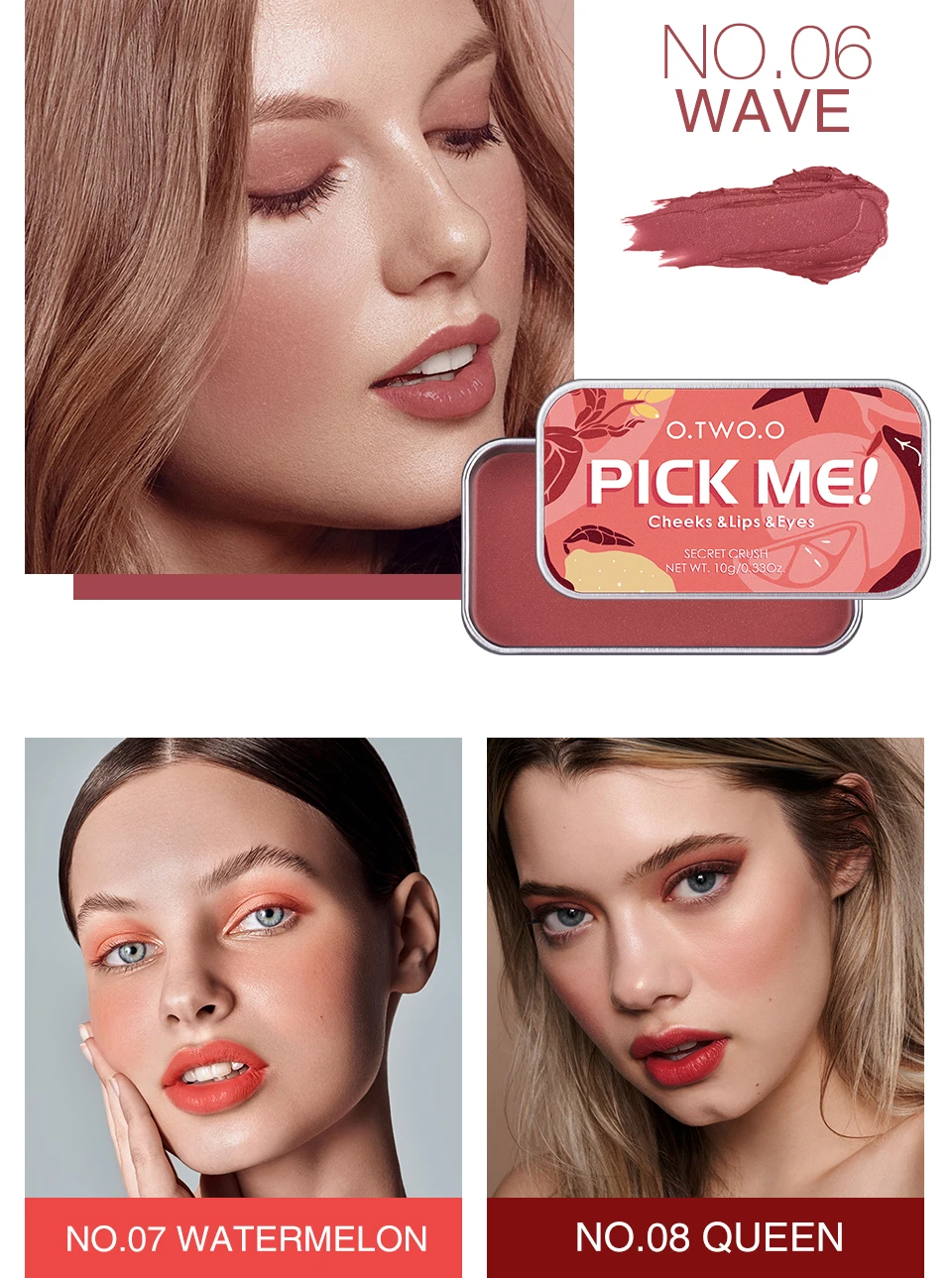 1.3 в 1 помада, Румяна Тени для век, легко получить Макияж одного цвета.