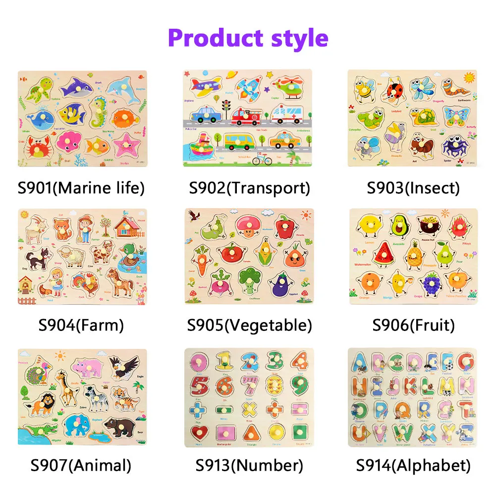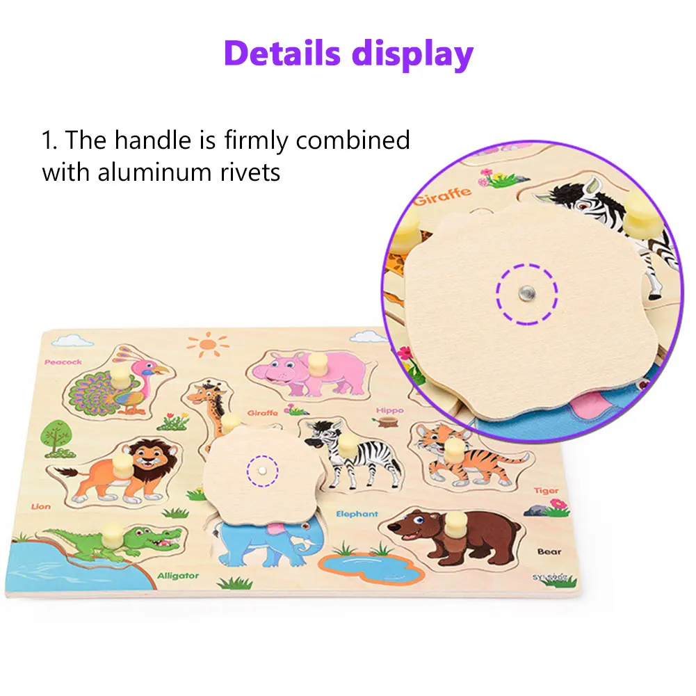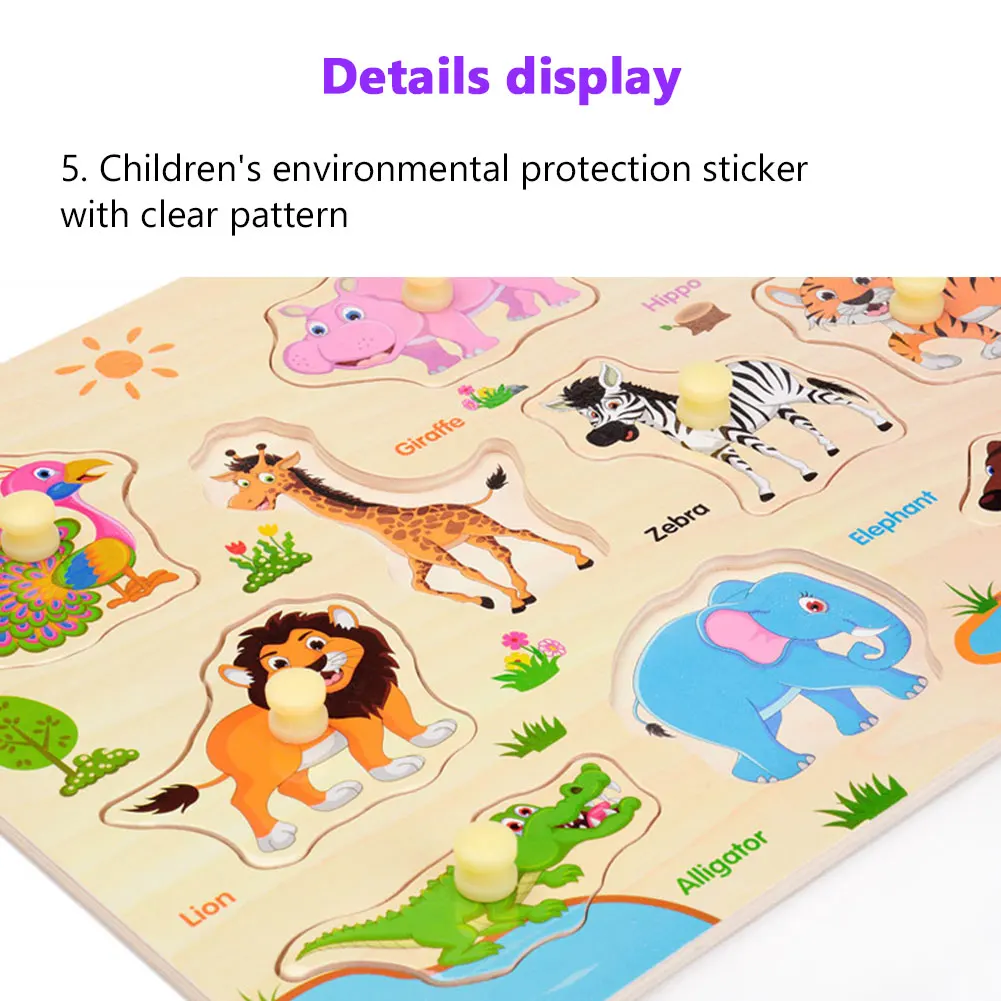 Отличный дизайн для малышей. Пазлы с крепкими колышками предназначены для маленьких детей, чтобы легко хватать. Изображения под штуками помогут вам подобрать подходящий размер.