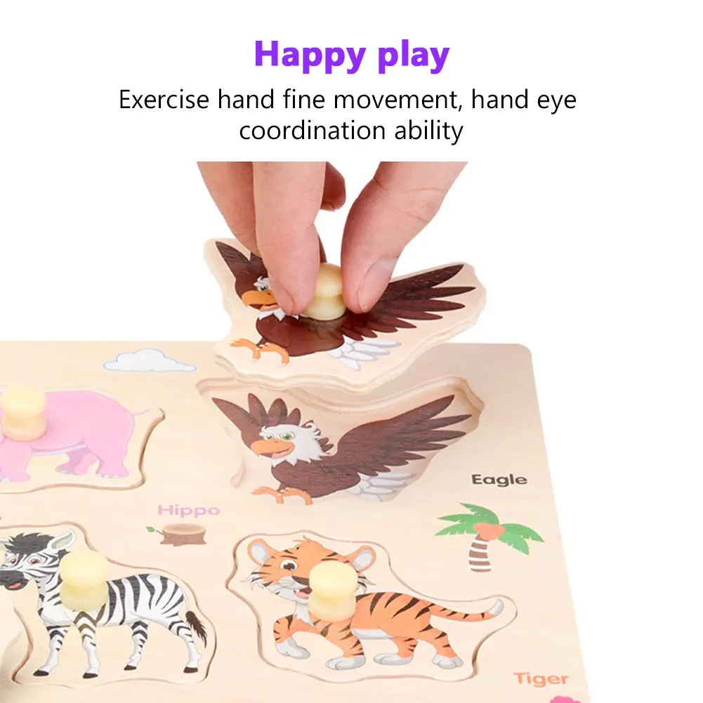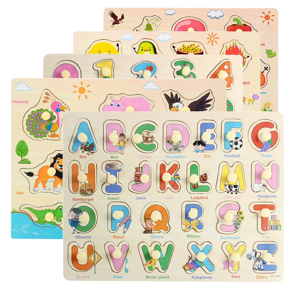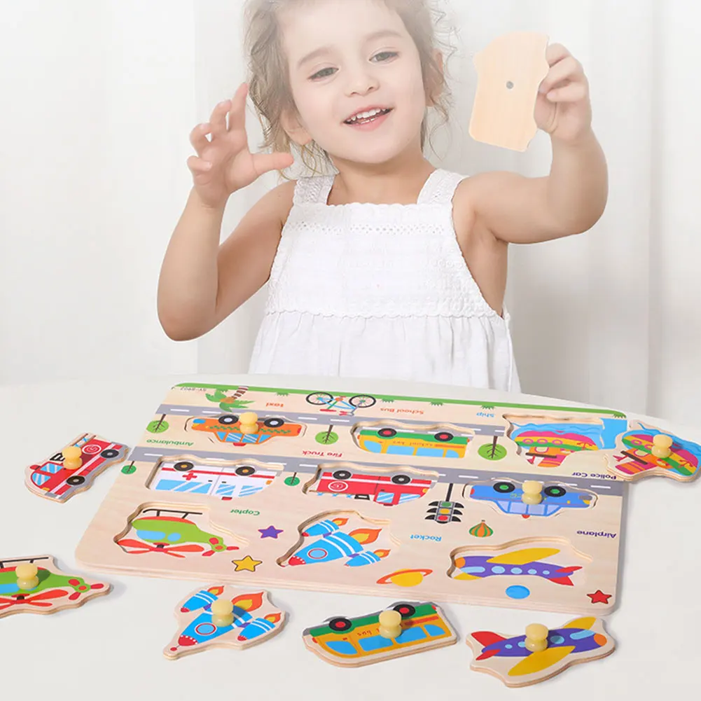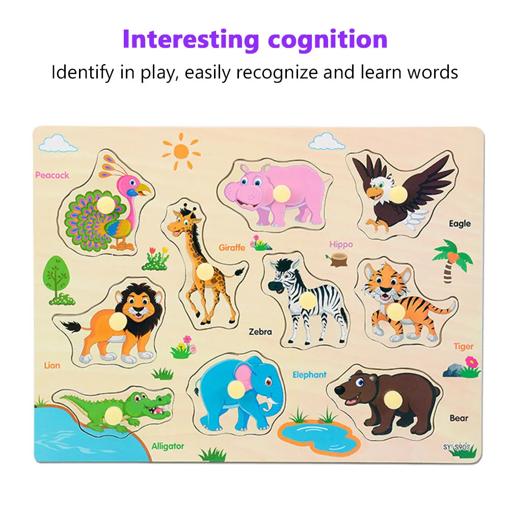 Отличный дизайн для малышей. Пазлы с крепкими колышками предназначены для маленьких детей, чтобы легко хватать. Изображения под штуками помогут вам подобрать подходящий размер.