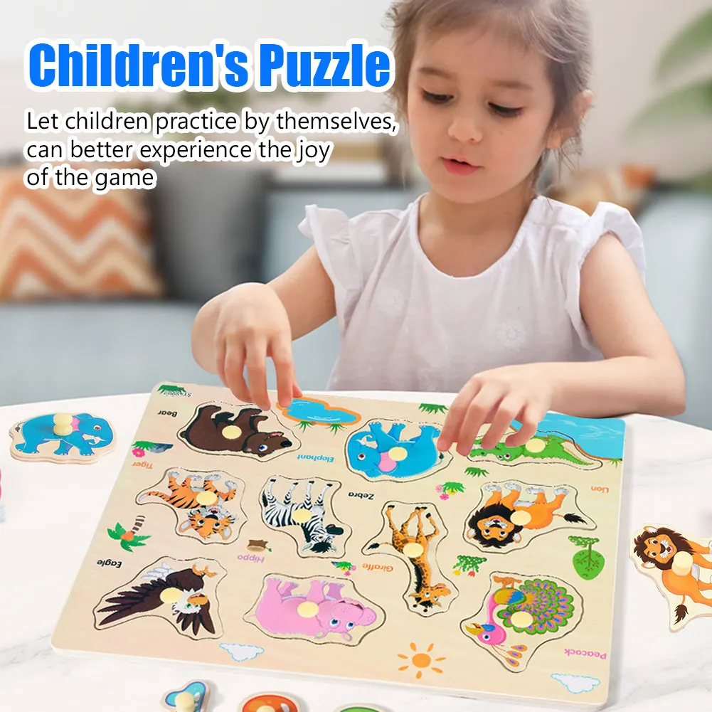 Развивающие игрушки для малышей. Этот набор деревянных головоломок для детей в возрасте 1, 2, 3, 4 лет стимулирует развитие мозга во время игры, помогает развивать множество навыков, таких как координацию рук и глаз, мелкую моторику, базовые когнитивные навыки, распознавание цвета, познание животных во время создания основы для жизни любви к обучению.