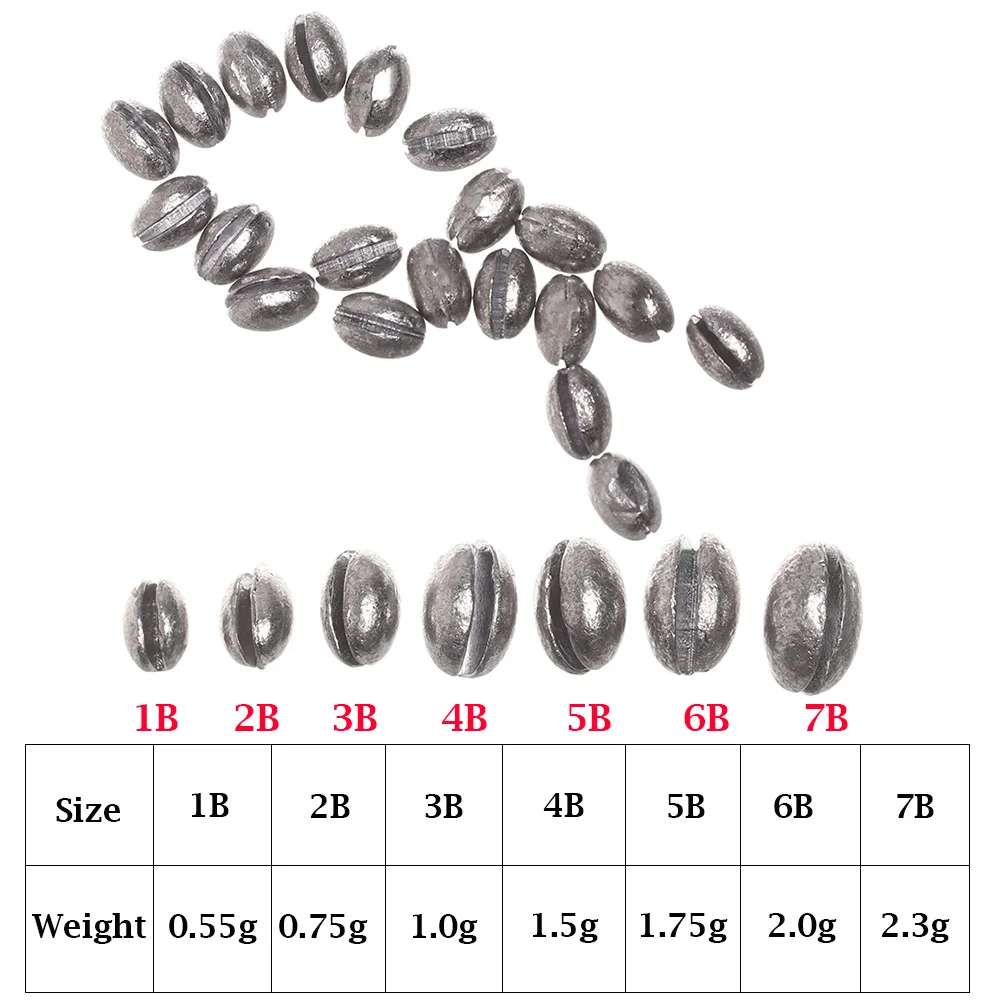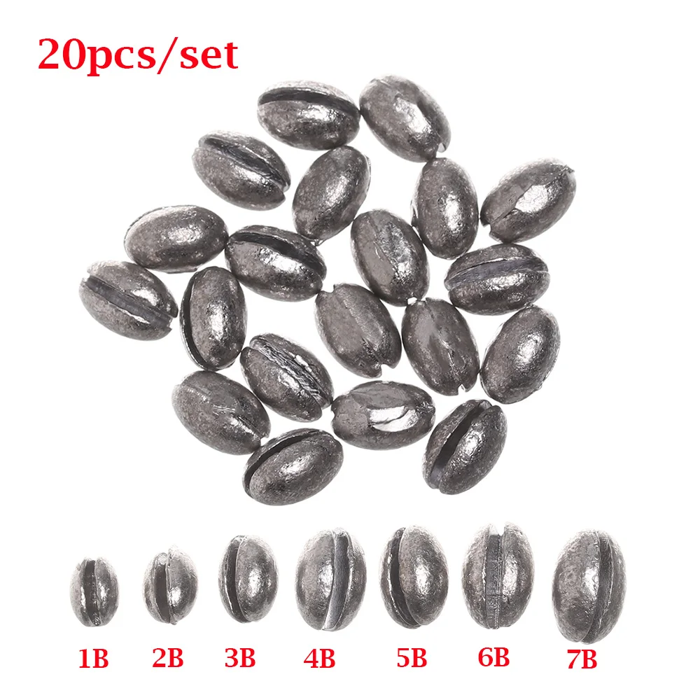 20 шт., Круглый в форме оливы, рыболовный свинец, осенняя леска, грузило, открытый рот, крючок, коннектор, дополнительный вес, Сплит, рыболовные инструменты
