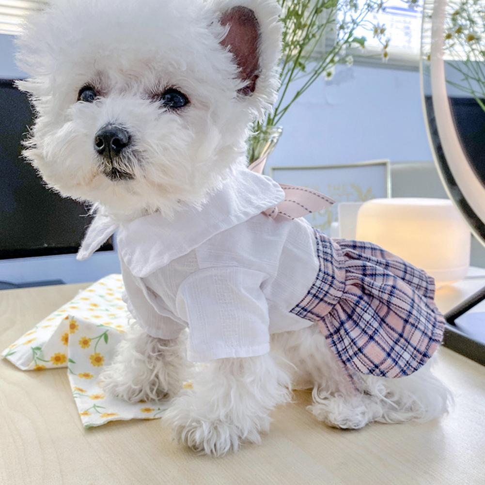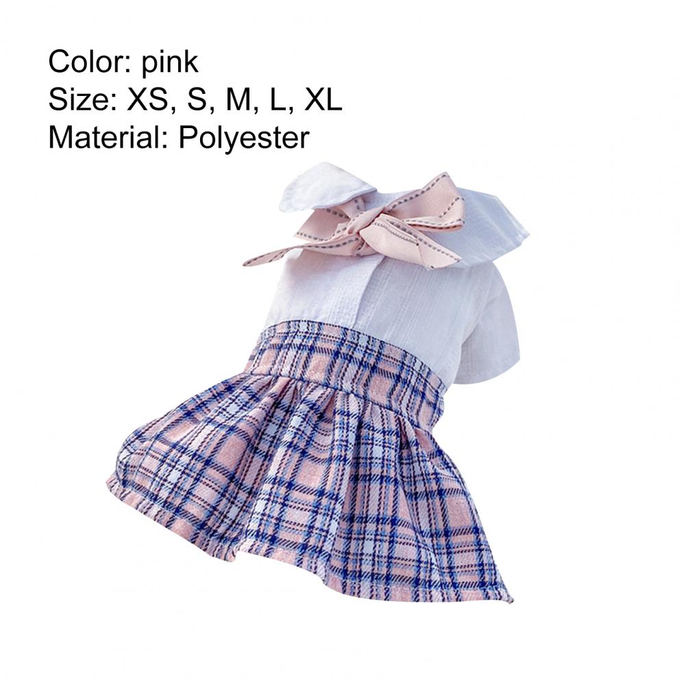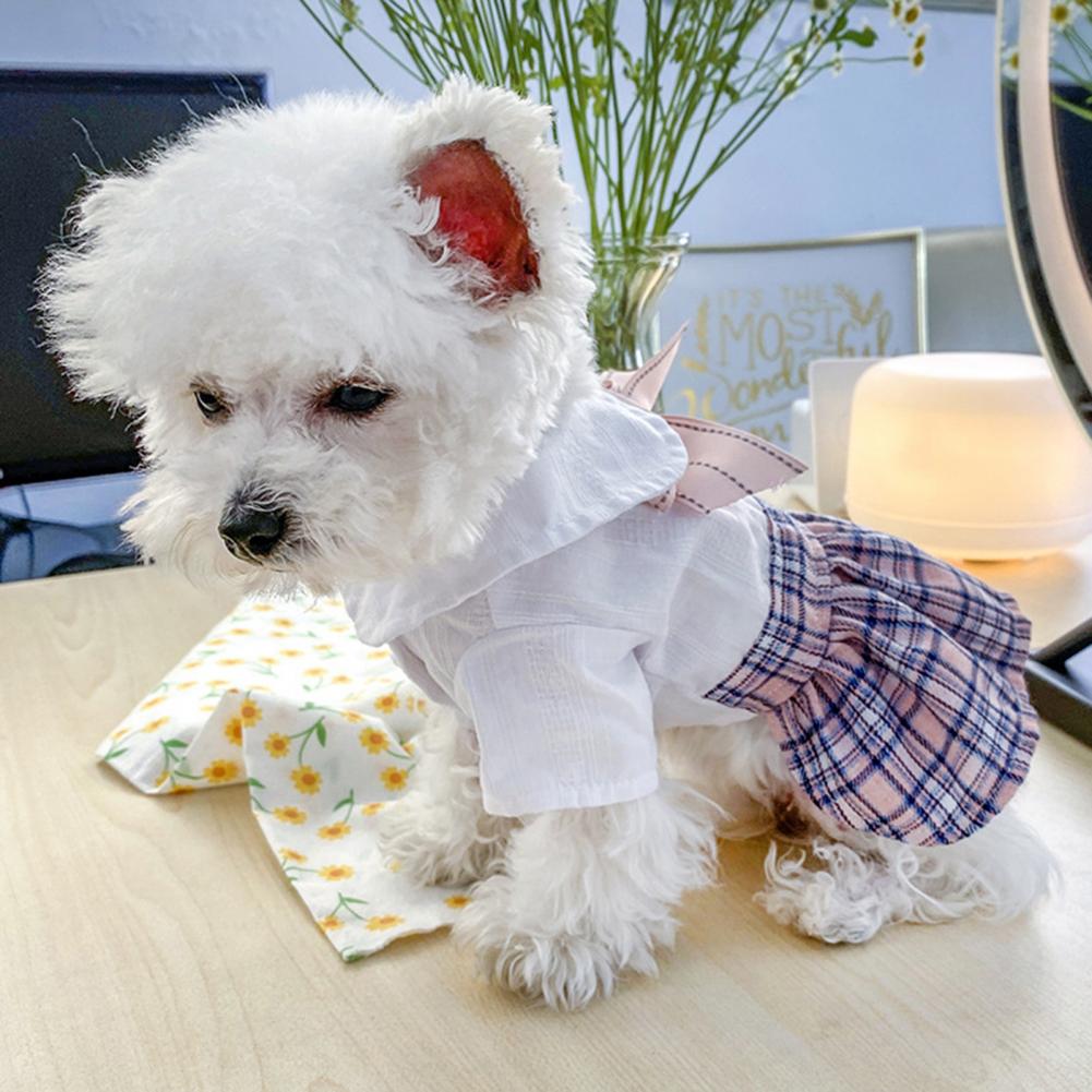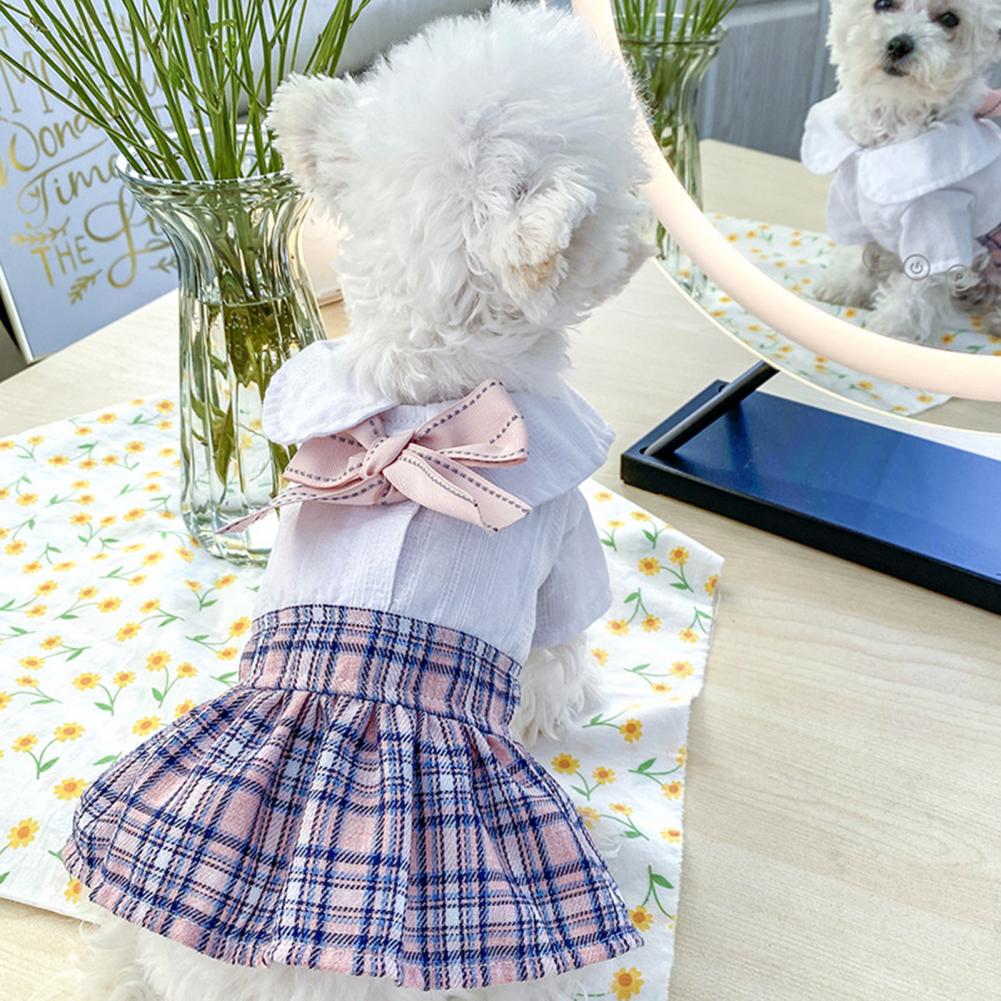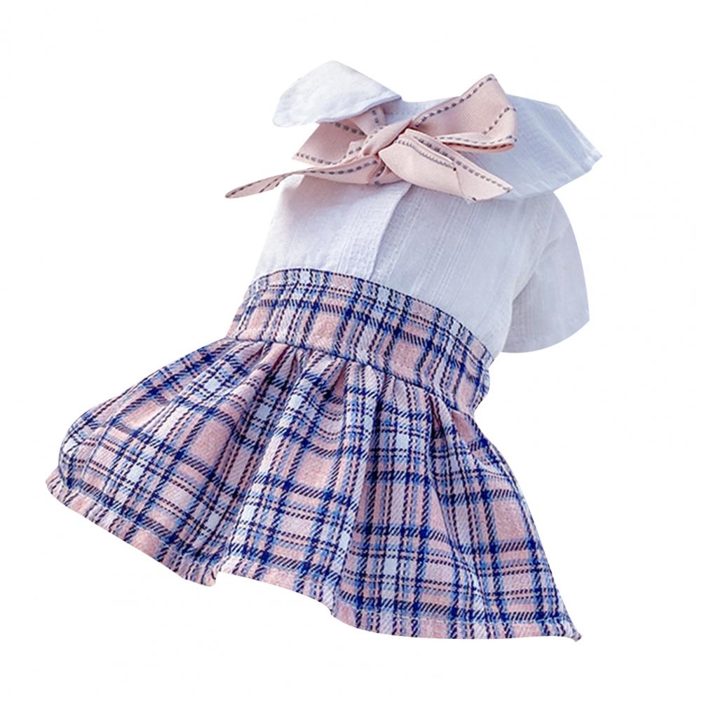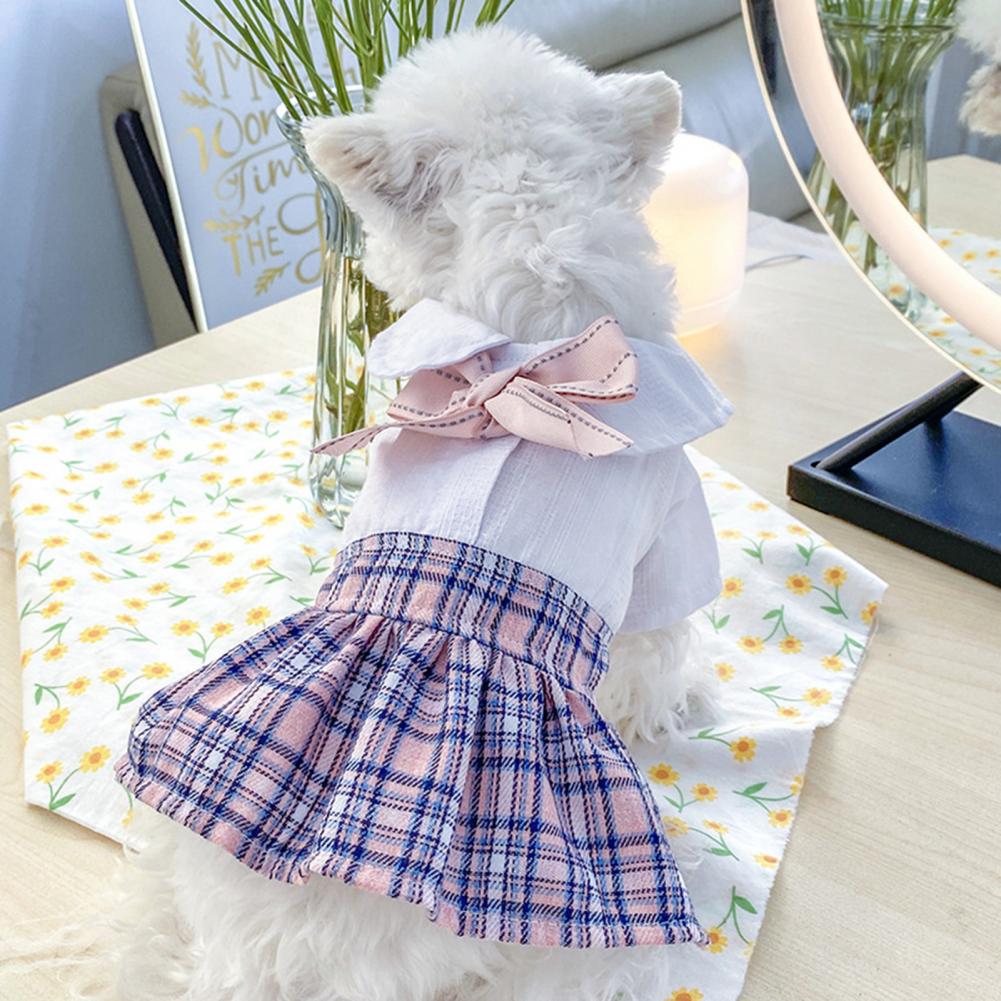 Платье для собаки синий полиэстер с бантом сзади дизайн кампус стиль плюшевый Декор отложной воротник полиэстер плед Печать Pet юбка для вечерние
