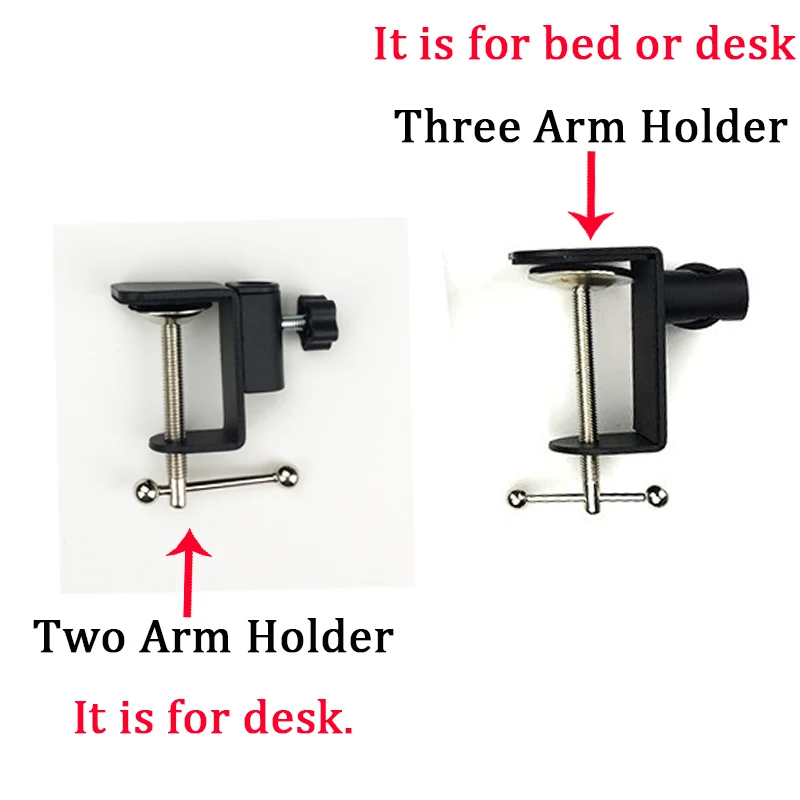 Два длинных держателя для рук только для стола. Это не для кровати. Настольный зажим с двумя ручками и Настольный зажим с тремя ручками отличается.