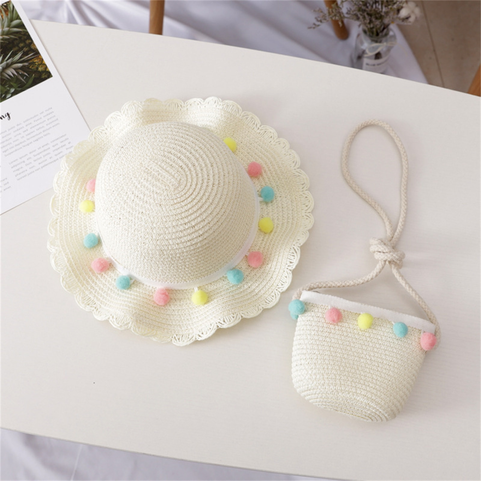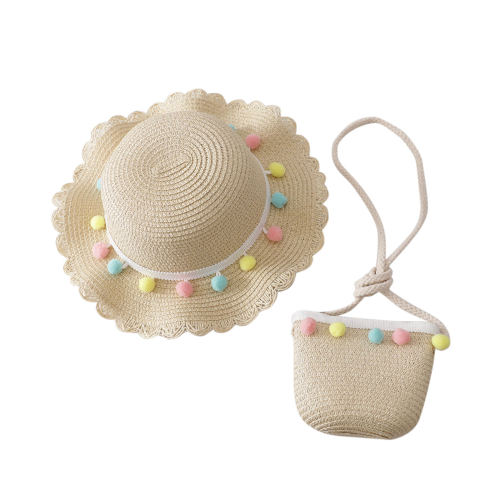 DescriptionChildren Girl Summer Cunscreen Cunshade Hat Straw Beach Sun Hat + Straw BagFeature: